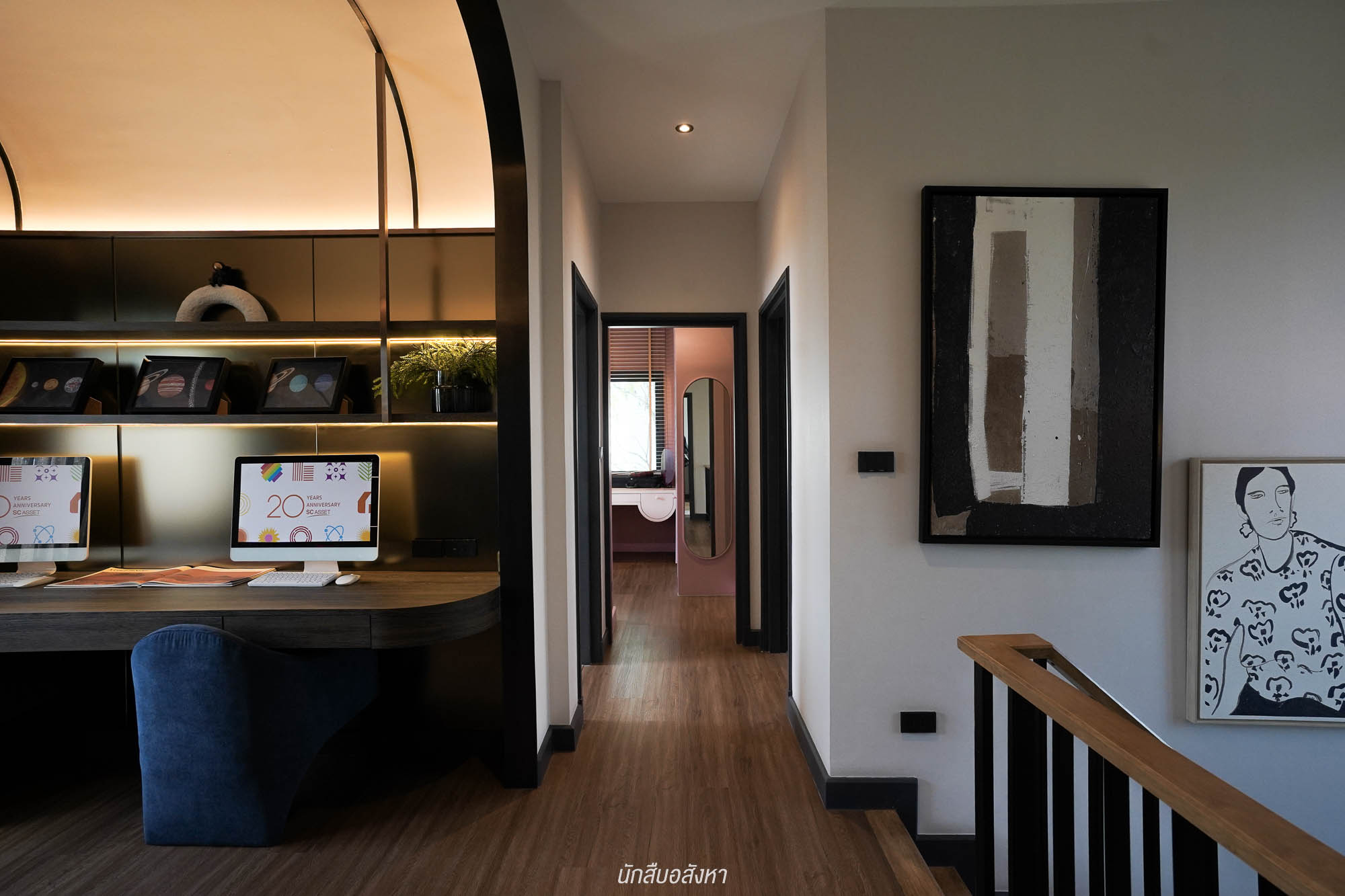 มาต่อกันที่ชั้น 2 ของบ้าน จะเป็นชั้นพักอาศัย เมื่อเดินขึ้นมาจะเจอกับโถงทางเดิน แบ่งแยกห้องนอน 3 ห้องเป็นสัดส่วน เริ่มที่ Family Area โครงการให้พื้นที่มาเยอะพอสมควร