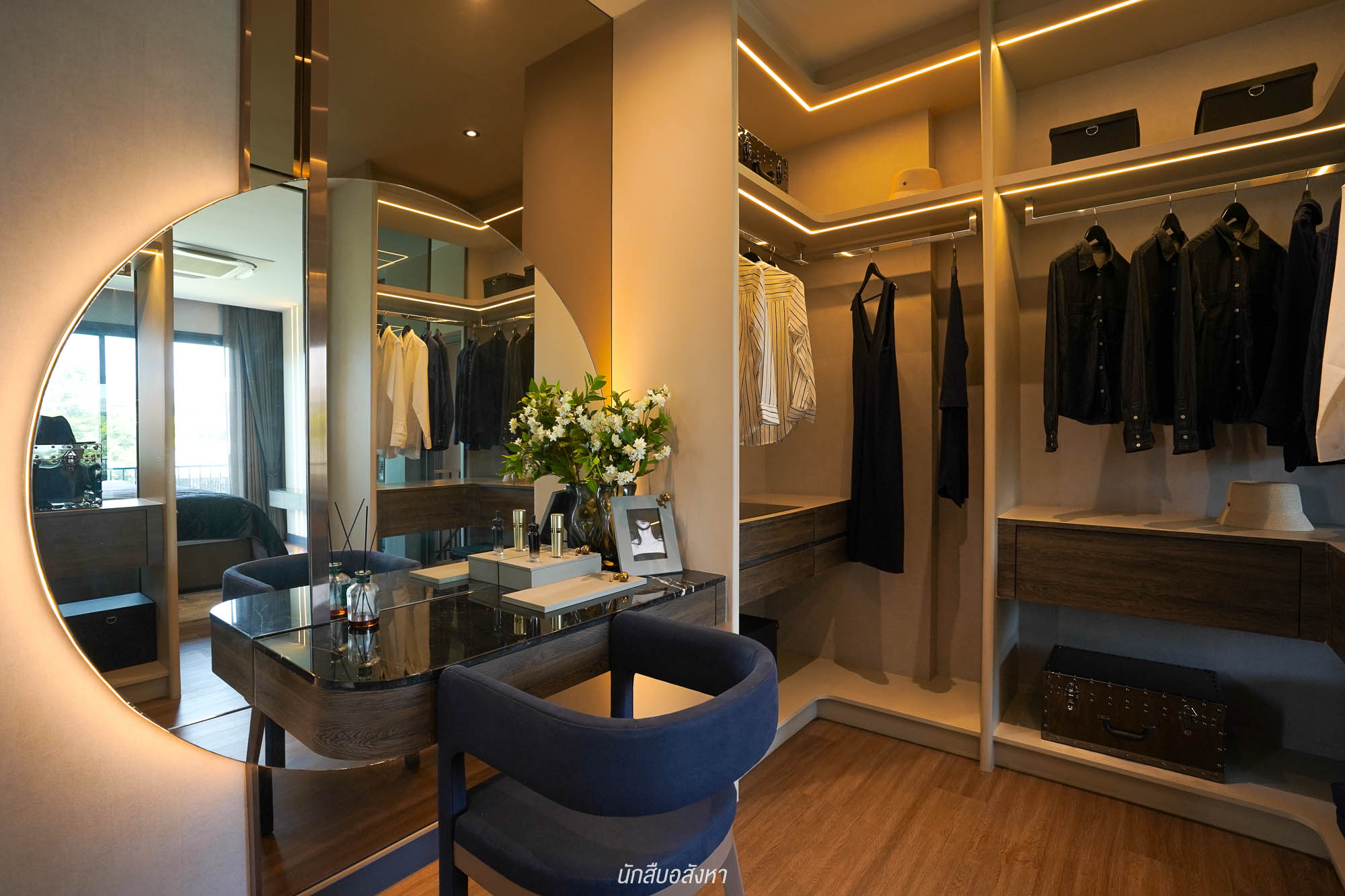 ส่วน Walk-in closet จะมีห้องน้ำในตัว สามารถจัดตู้เสื้อผ้า ได้รอบด้าน ห้องน้ำแบ่งส่วนเปียก – ส่วนแห้ง มาให้เรียบร้อย