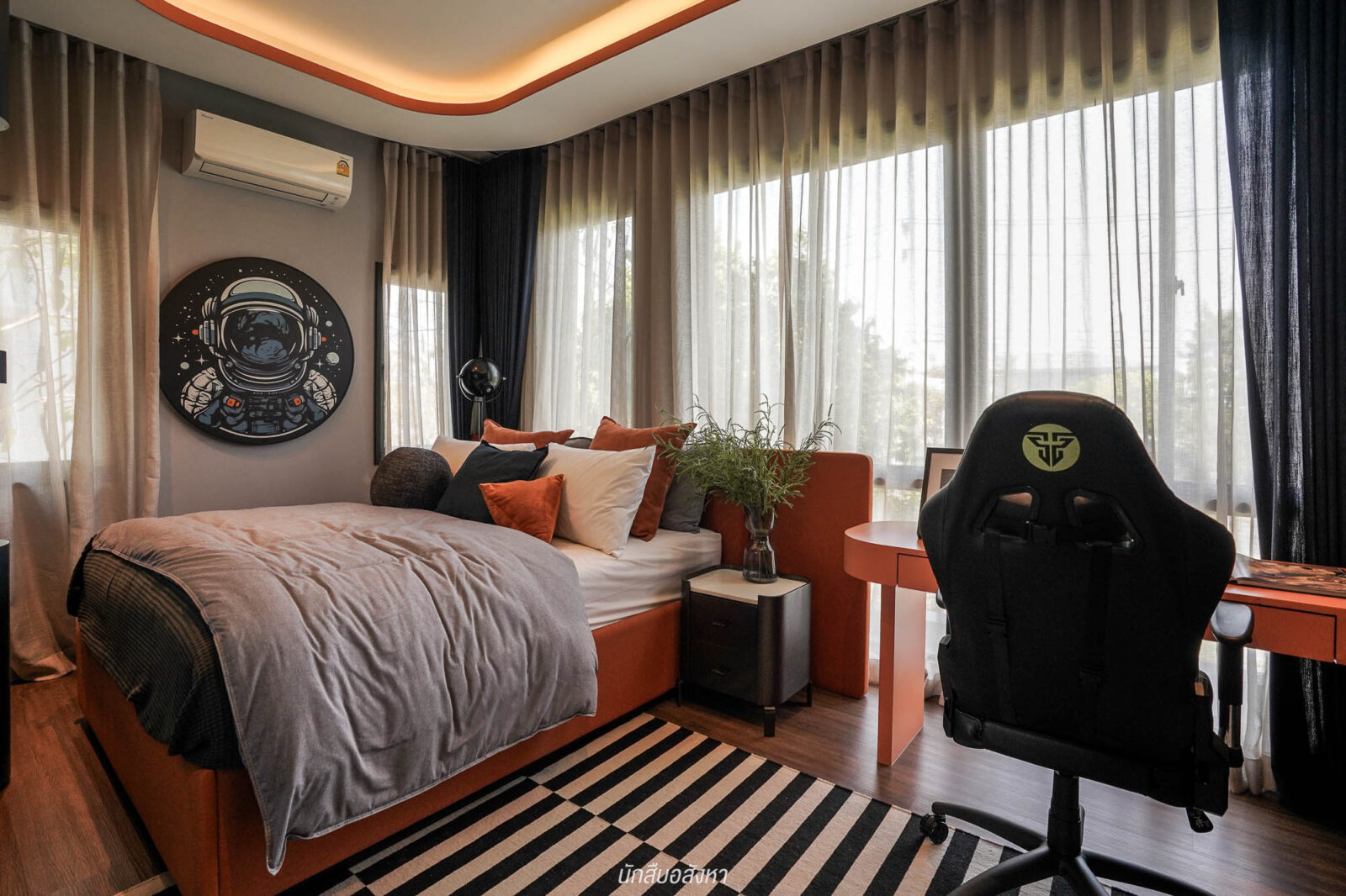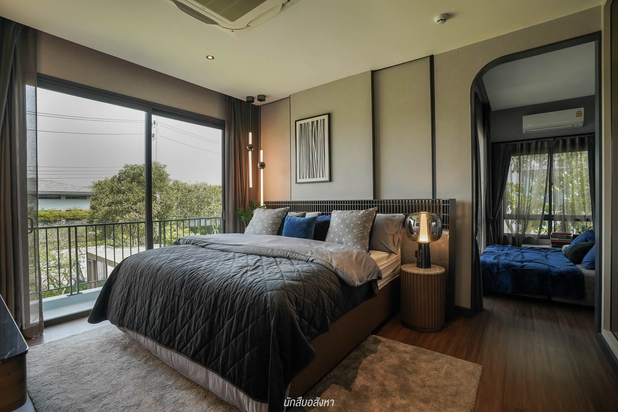 ถัดมาฝั่งนี้จะเป็น Master Bedroom ขนาดใหญ่ วางเตียง King Size ได้สบาย และยังมีพื้นที่เหลือ ๆ ให้เพิ่มมุมนั่งทำงาน หรือมุมพักผ่อนได้อีก