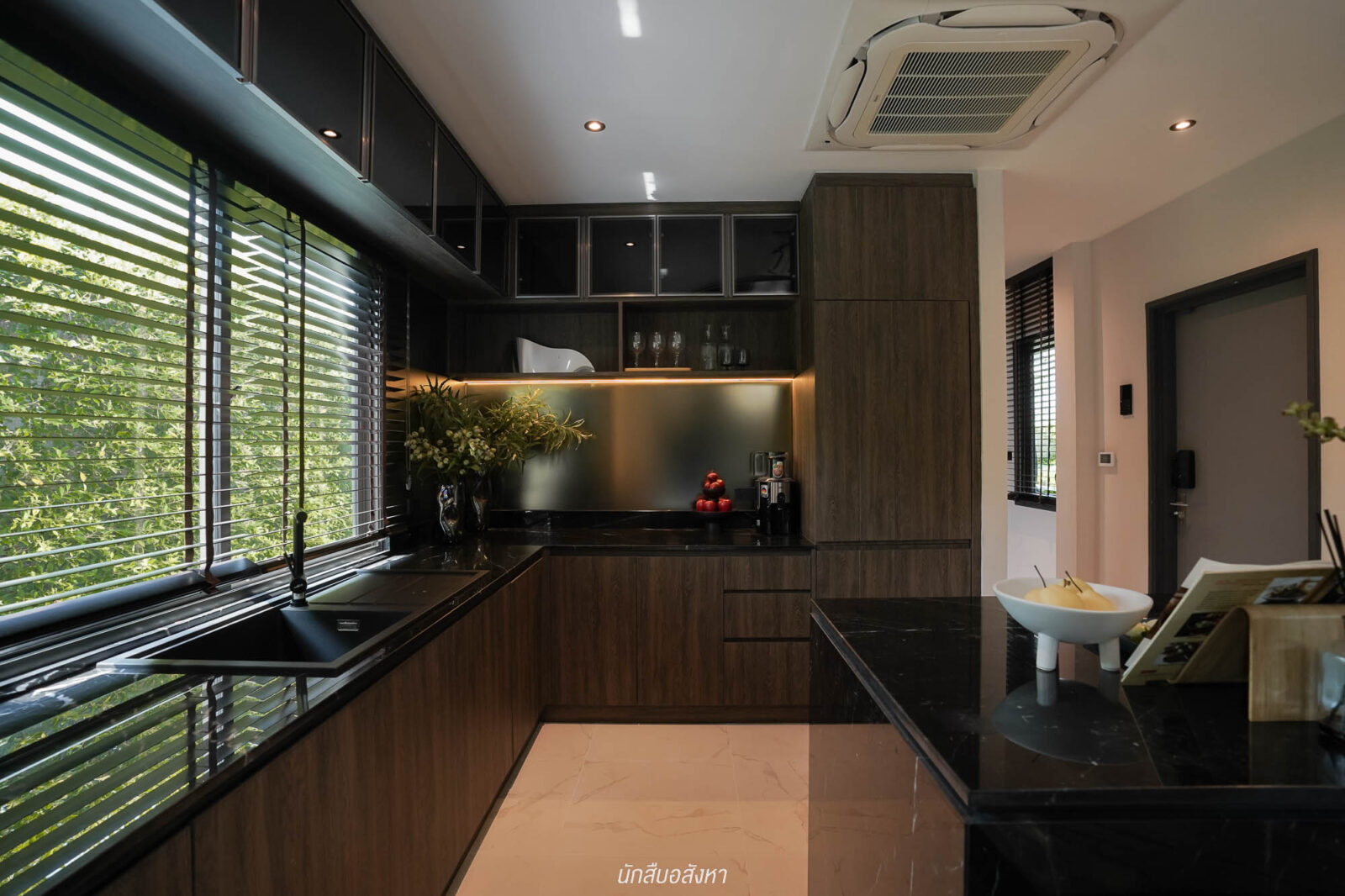 ขยับเข้ามาจะเป็นห้องครัว ได้มาเป็นครัวปิด มีพื้นที่กว้างกำลังพอดี วางเคาน์เตอร์ครัว 2 ฝั่งได้สบาย อนาคตจะต่อเติมครัวหลังบ้านก็ได้ เพราะโครงการมีประตูเชื่อมออกส่วนซักล้างหลังบ้านได้พอดี