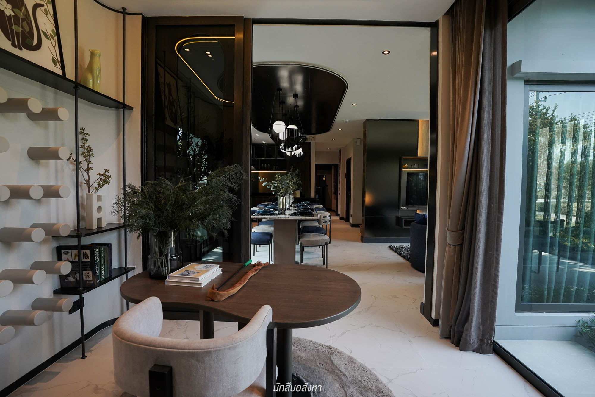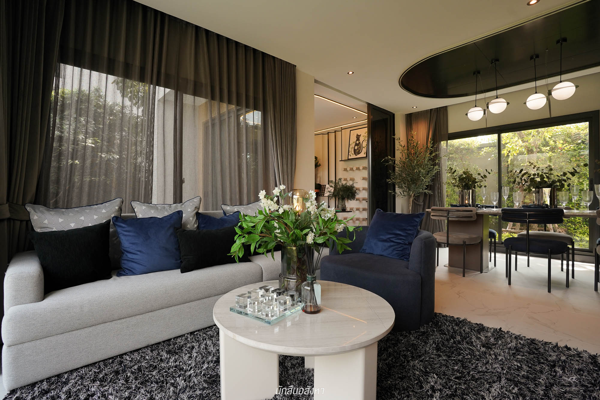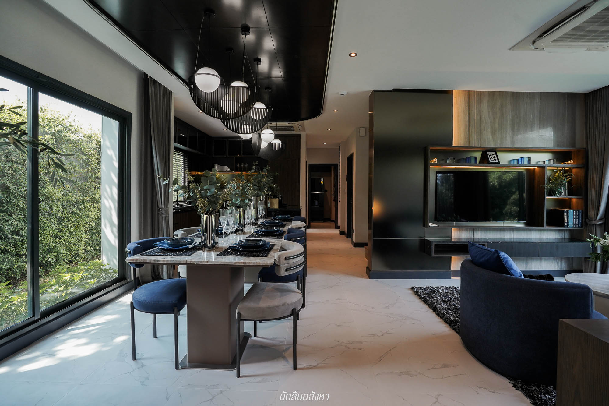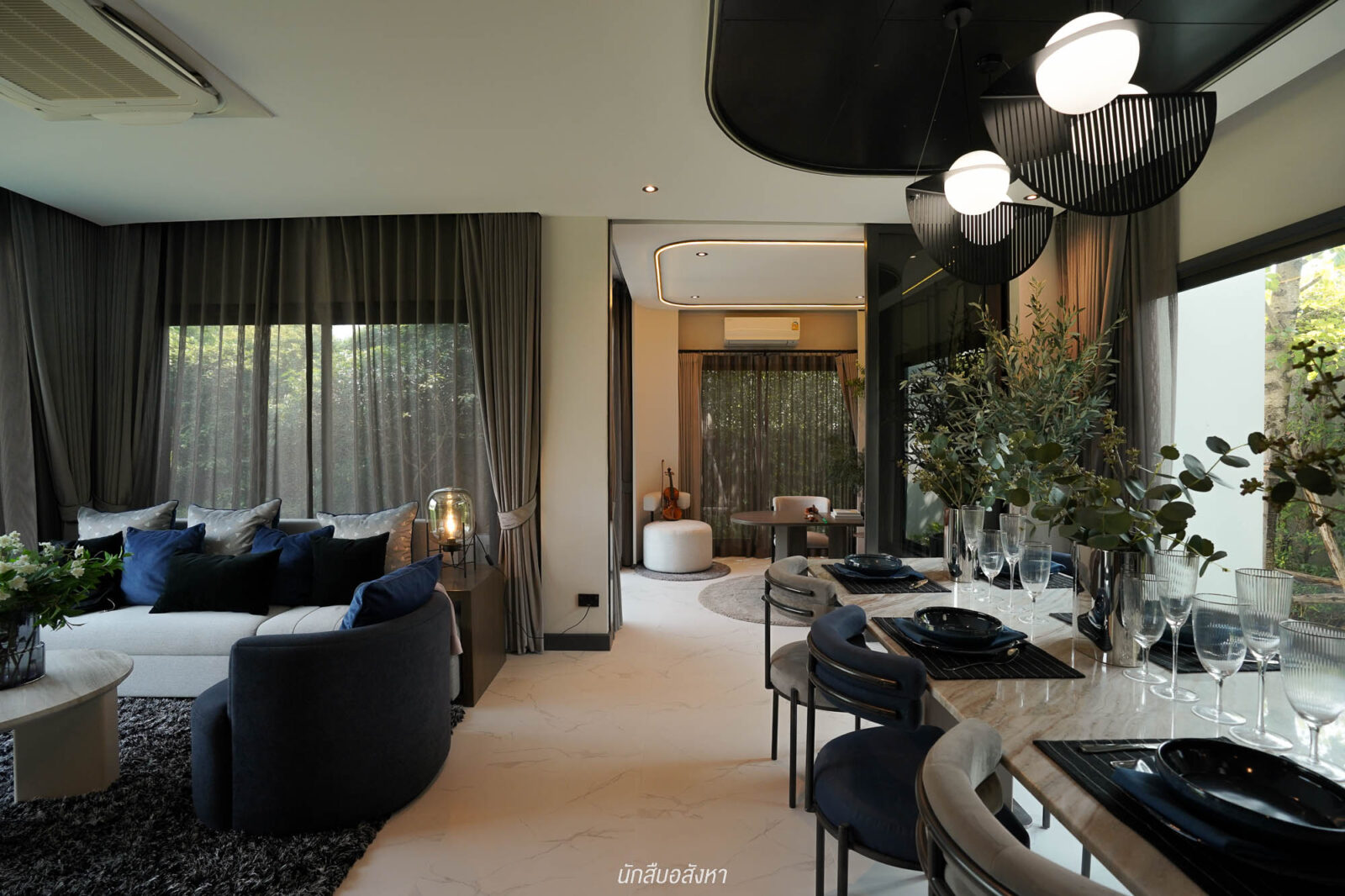 ส่วนอีกฝั่งของบ้านจะเป็น Double Living พื้นที่เปิดโล่งเชื่อมต่อกัน ภายในมีพื้นที่มาให้พอสมควร ซึ่งส่วนนี้สามารถทำเป็นมุมพักผ่อนเหมือนบ้านตัวอย่าง