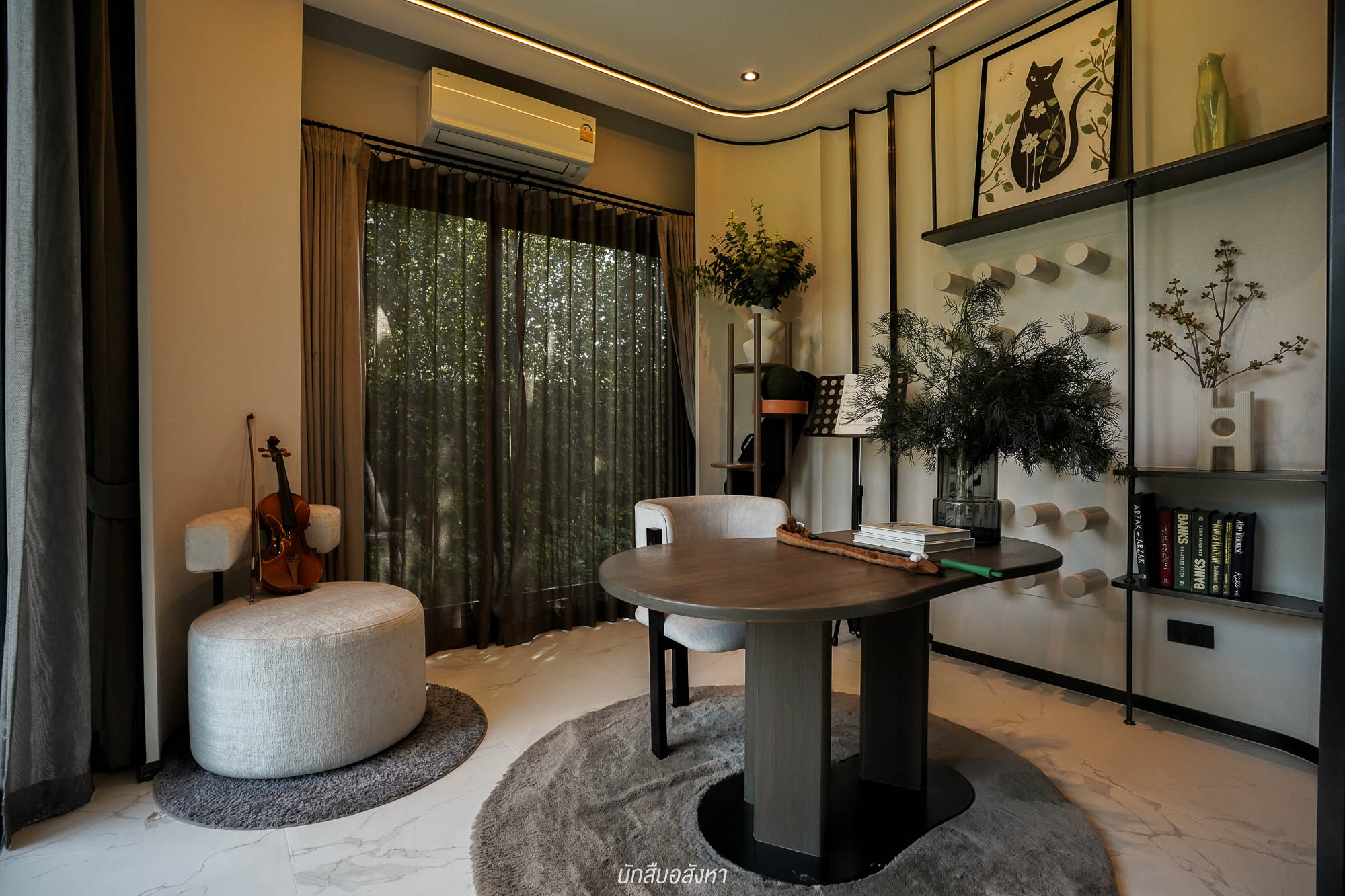 หรือจะทำเป็นห้องดูหนังก็ได้ โดยมองออกมา จะเห็นสวนข้างบ้านพอดีครับ