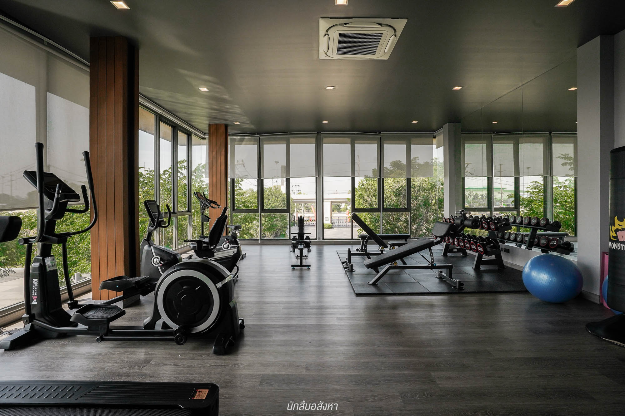 ขึ้นไปที่ชั้น 2 บริเวณบันได โครงการติดตั้งเก้าอี้เลื่อนไฟฟ้า มาไว้รองรับผู้สูงอายุ ช่วยให้ขึ้นลงได้สะดวก เมื่อขึ้นมา จะเจอกับห้องฟิตเนส โครงการมีเครื่องออกกำลังกายมาให้ครบครัน ผนัเป็นกระจกขนาดใหญ่ เปิดรับวิวด้านนอกได้ มองออกไปก็จะเจอกับสระว่ายน้ำ และสวนหย่อมขนาดเล็ก