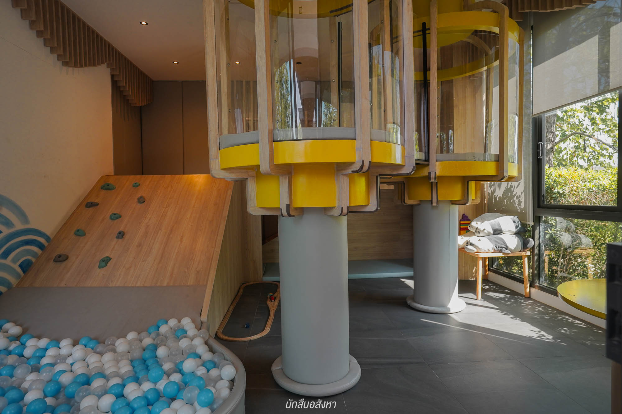 และพิเศษด้านในจะมีบ่อ Onsen อุณหภูมิอยู่ที่ 40 องศา ลูกบ้านสามารถมานั่งแช่น้ำกันได้ ด้านนอกจะมีสวนตกแต่งสไตล์ญี่ปุ่นมาให้ด้วย ถัดมาจะเป็น Kid’s Room แยกห้องมาให้ ขวามือจะมีทางเดินเชื่อมออกไปยังสนามเด็กเล่นได้อีก