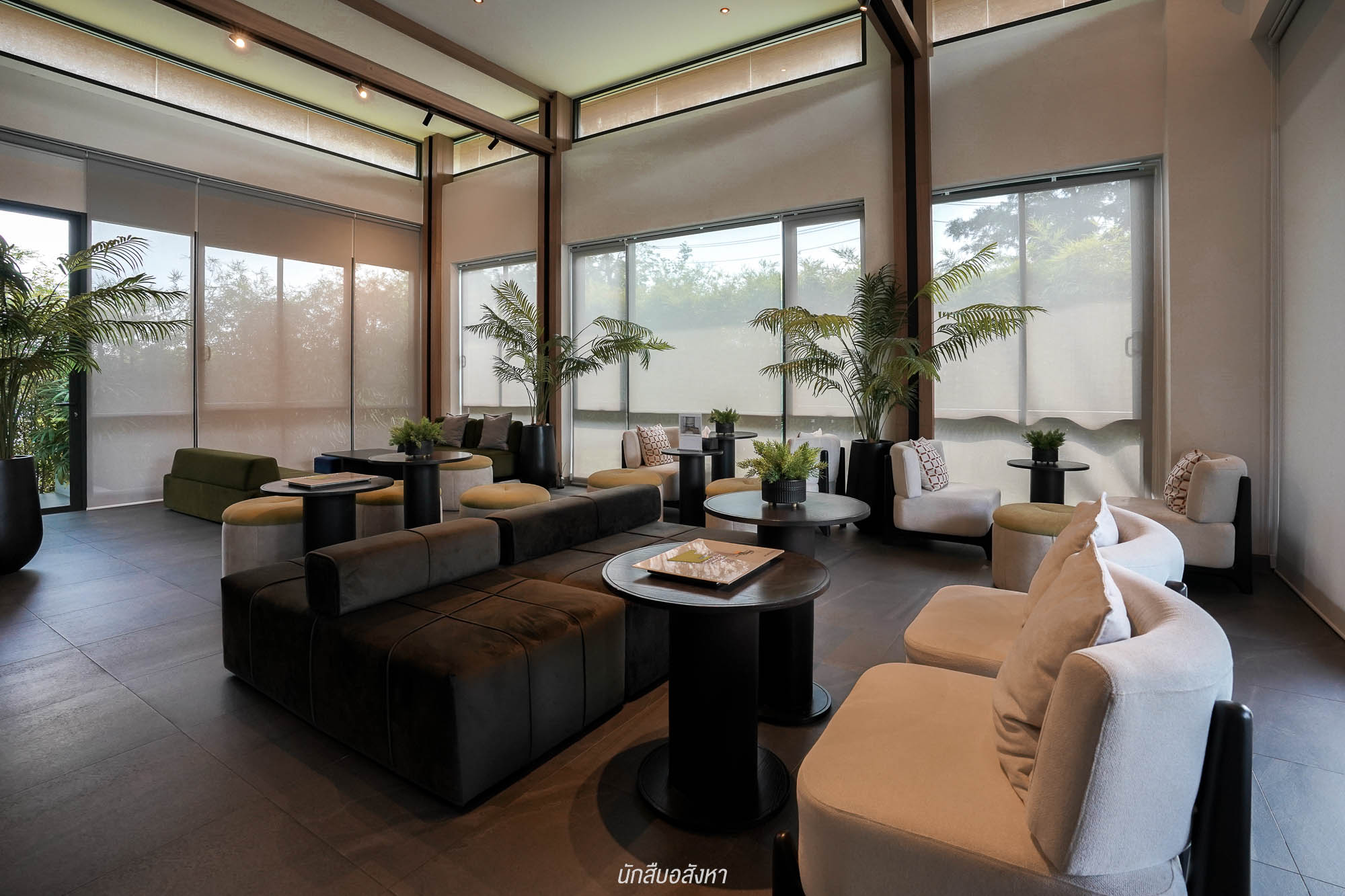 เข้ามาด้านในอาคาร ขวามือเป็น Lobby มีพื้นที่พักผ่อน ลูกบ้านสามารถเข้ามาใช้งาน เป็น Co-Working Space นั่งพักผ่อน ทำงาน หรือรองรับแขกที่ไม่สนิทมากก็ได้ เพราะโครงการได้จัดวางโซฟาขนาดใหญ่มาหลายชุด ปัจจุบันยงเป้นพื้นที่สำนักงานขายอยู่