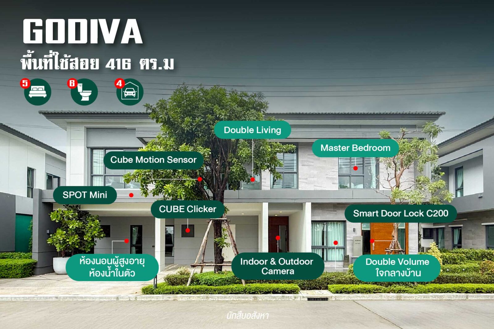 ■ GODIVA พื้นที่ใช้สอย 416 ตร.ม ฟังก์ชัน 5 ห้องนอน 6 ห้องน้ำ 4 ที่จอดรถ