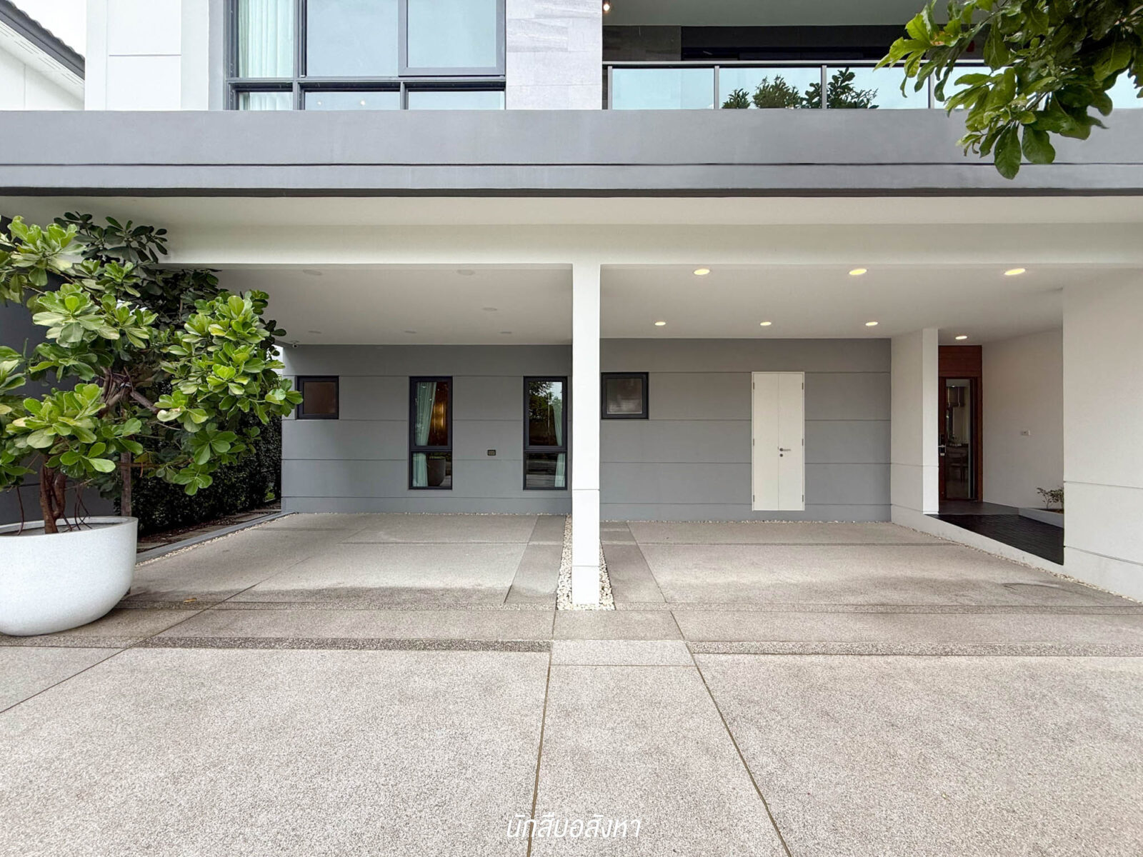 เมื่อเข้ามาบริเวณหน้าบ้าน พื้นที่ตรงนี้สามารถจอดรถสูงสุดได้ 4 คัน ซึ่งจอดในร่มได้ทั้งหมด โดยทางโครงการมีการลงเข็มไว้ให้แล้ว อนาคตจะต่อเติมทำได้เลย ไม่ต้องลงเสาเข็มเพิ่ม