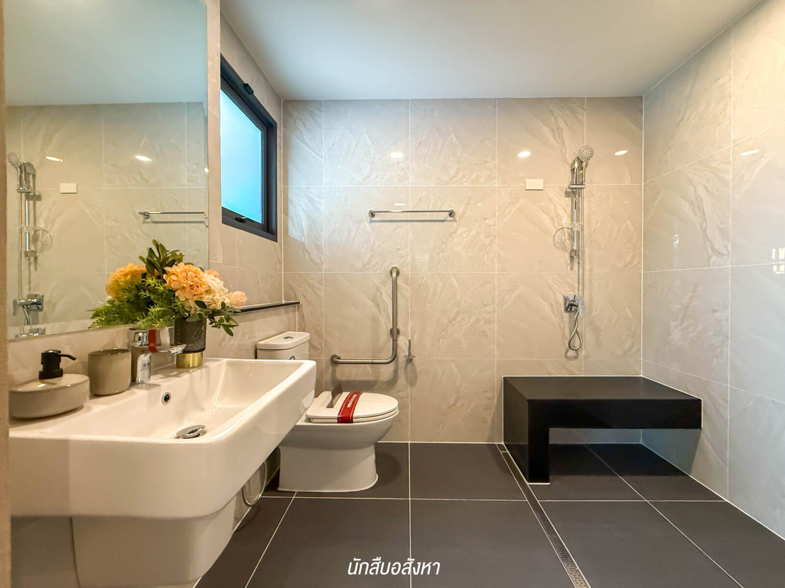 มาพร้อมห้องน้ำในตัว พื้นห้องน้ำราบเสมอกัน ไม่มีสเต็ป และยังมีการติดตั้งราวจับ เพื่อช่วยในการพยุงตัวขณะใช้งานด้วย