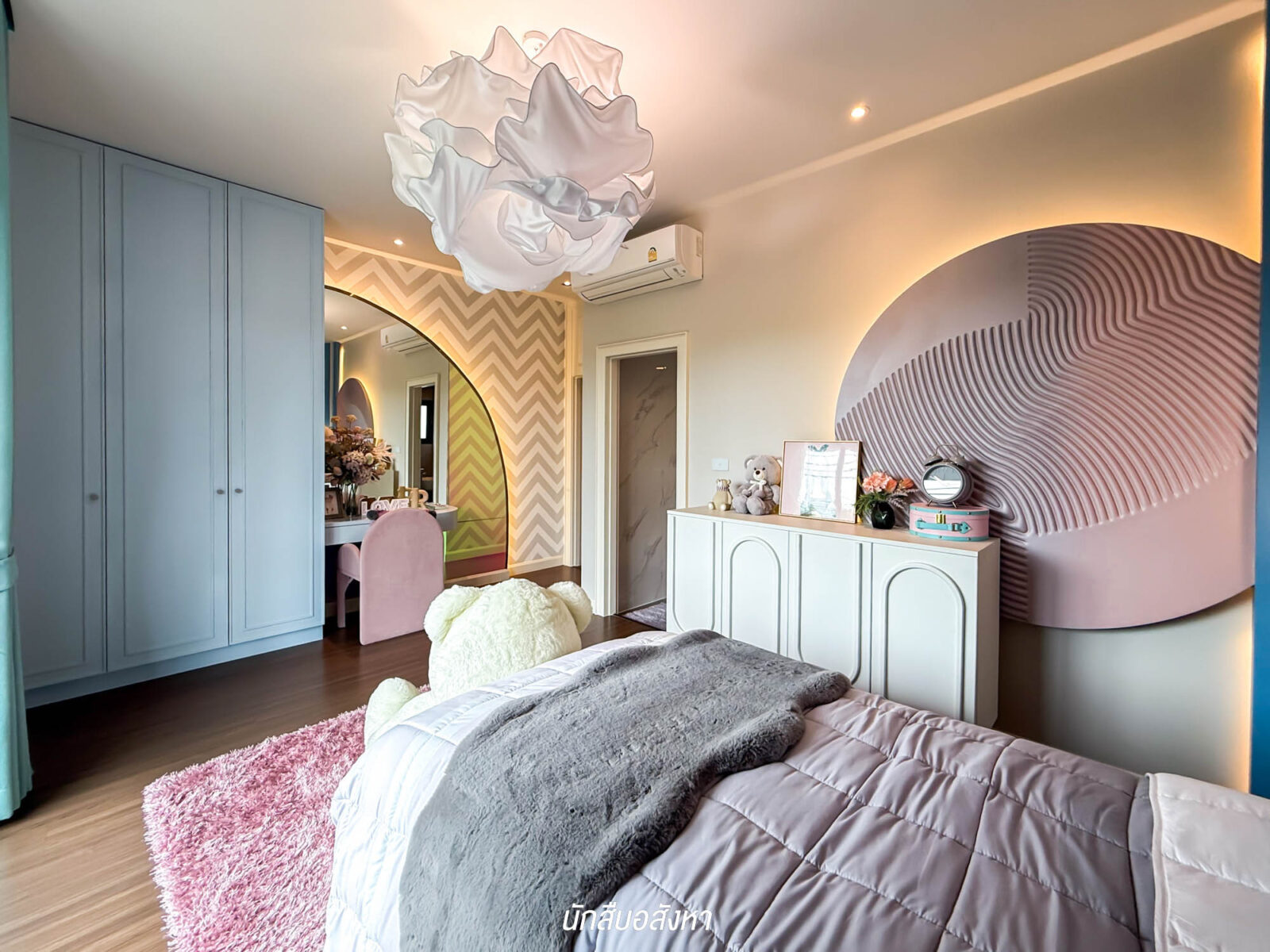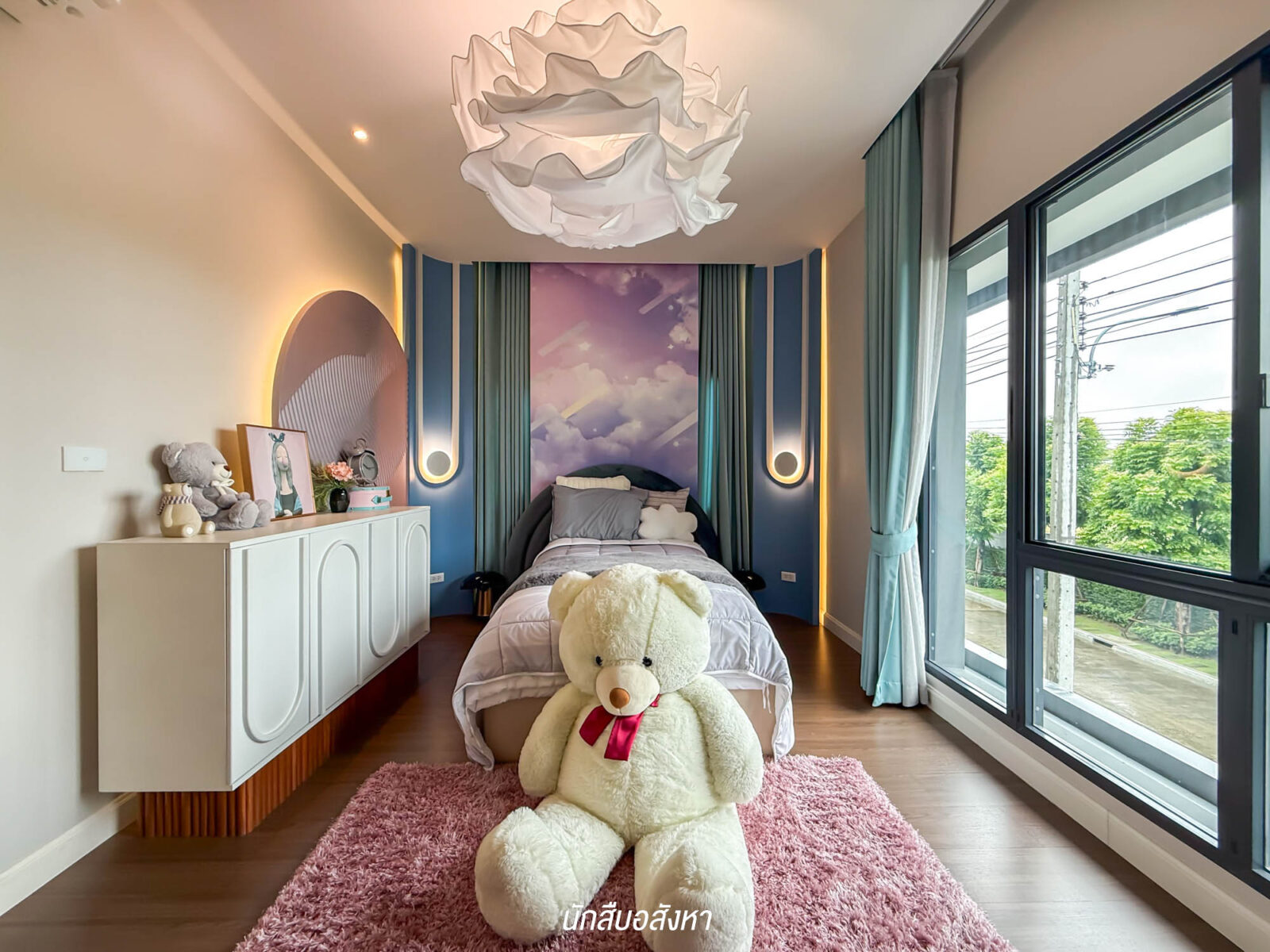 ห้องนอนที่ 3 ขนาดใหญ่ไม่แพ้กัน ให้พื้นที่ใช้สอยมาเยอะ ห้องกว้าง วางเตียง 5 ฟุตได้สบาย โดยที่ยังมีพื้นที่เหลือด้านข้าง ให้จัดฟังก์ชันใช้งานอื่น ๆ ได้อีก