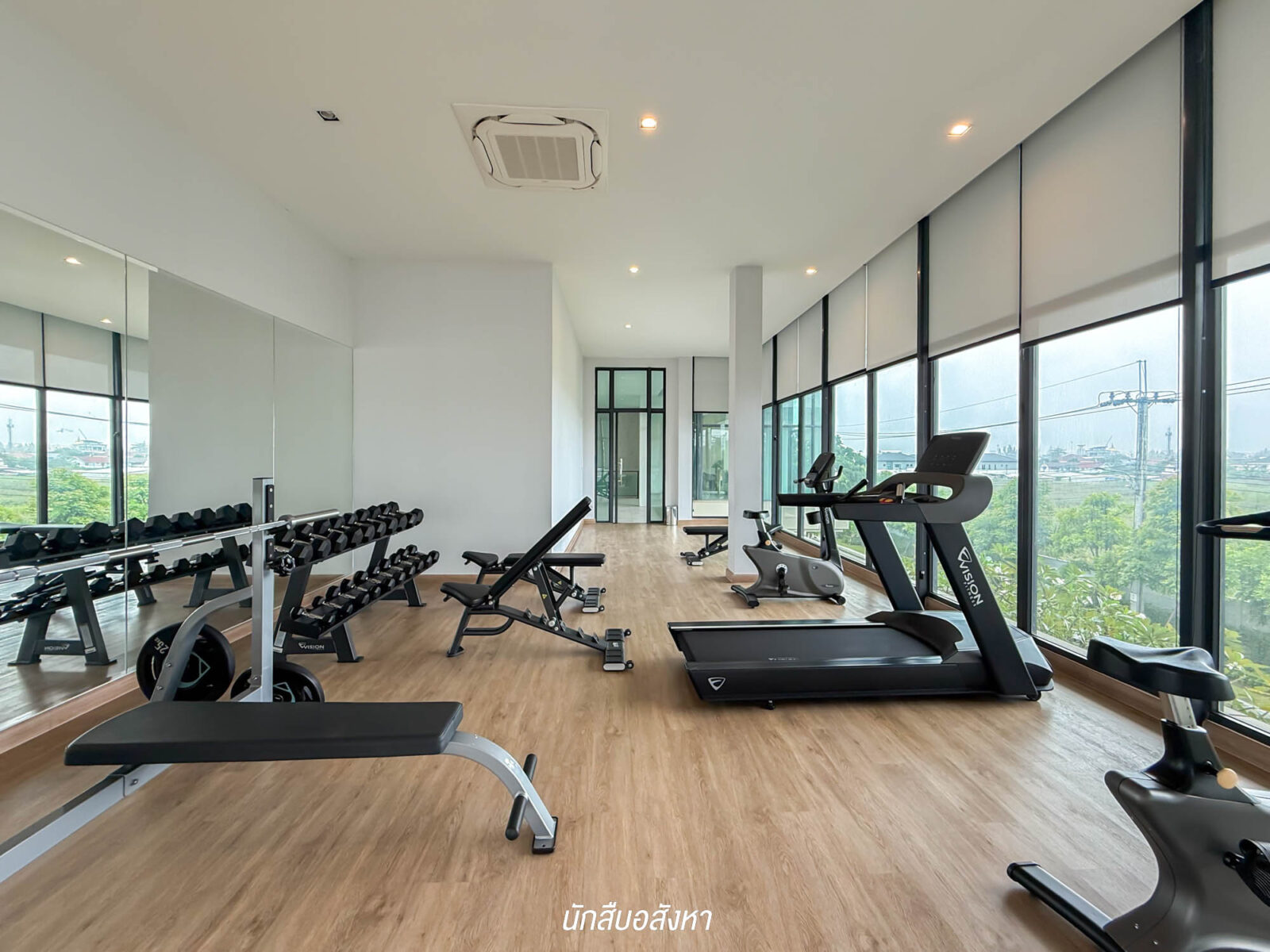 บนชั้น 2 จะเป็น Fitness พร้อมอุปกรณ์การเล่นครบครัน ผนังเป็นกระจกเช่นเดียวกัน แต่ฝั่งนี้จะได้เทควิวสระว่ายน้ำ ชิลล์ๆ ระหว่างการออกกำลังกาย