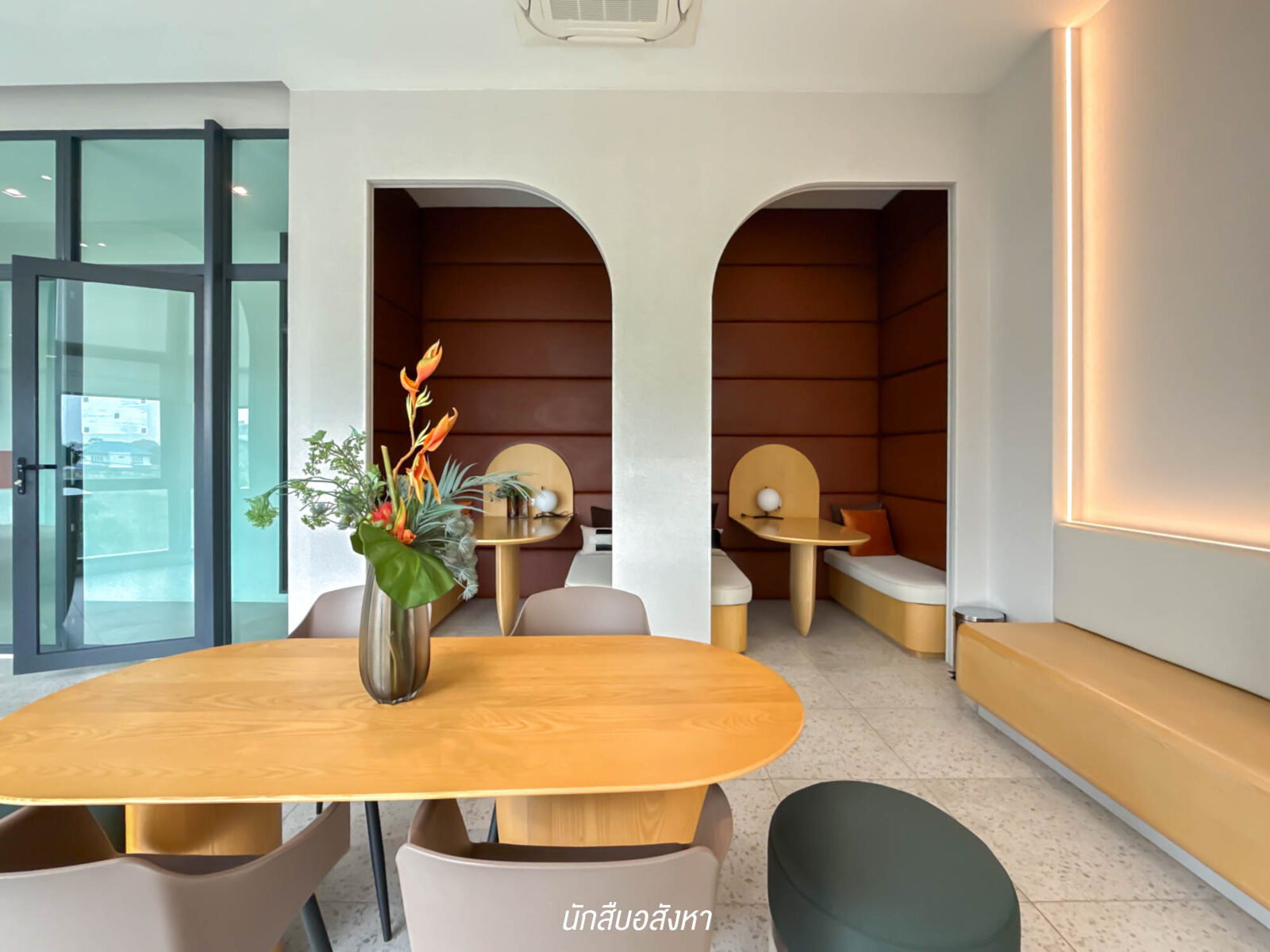 Co-Working Space ให้มาหลากหลายฟังก์ชันเลย นั่งได้หลายมุม โครงการจัดโต๊ะ + ที่นั่งพื้นที่ ให้ลูกบ้านใช้งานได้ตามความต้องการ เช่น อ่านหนังสือ ฟังเพลง หรือนั่งเล่นชิล ๆ