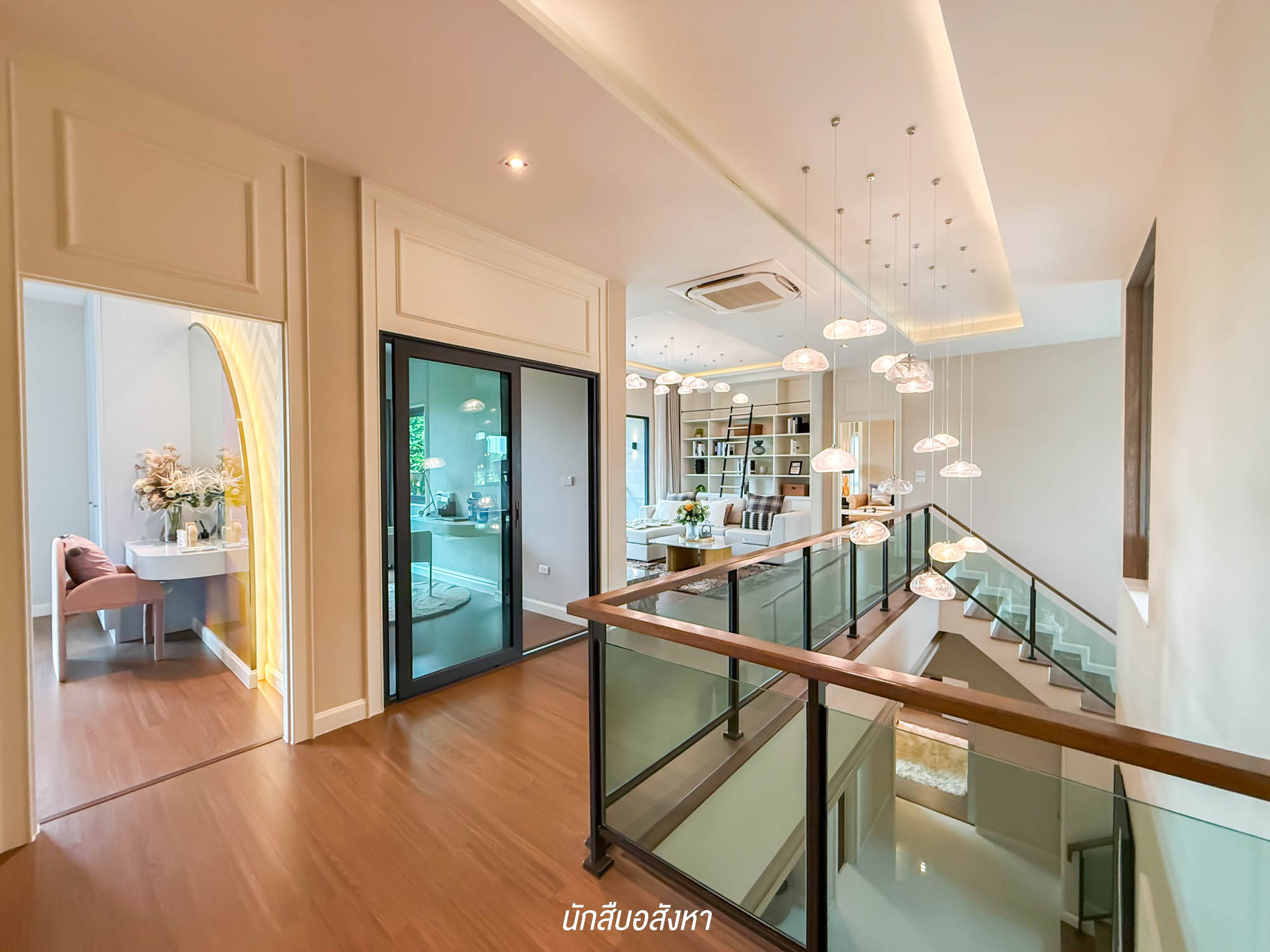 มาต่อกันที่ชั้น 2 ของบ้าน จะเป็นชั้นพักอาศัยของเจ้าของบ้าน เมื่อเดินขึ้นมาจะเจอกับโถงทางเดิน แบ่งแยกห้องนอน 4 ห้องเป็นสัดส่วน + Family Area พื้นที่พักผ่อน จะอยู่ตรงกลางของบ้าน สามารถดีไซน์ให้กลายเป็นมุมกิจกรรม เล่นบอร์ดเกมส์ หรืออ่านหนังสือ สำหรับสมาชิกในครอบครัว
