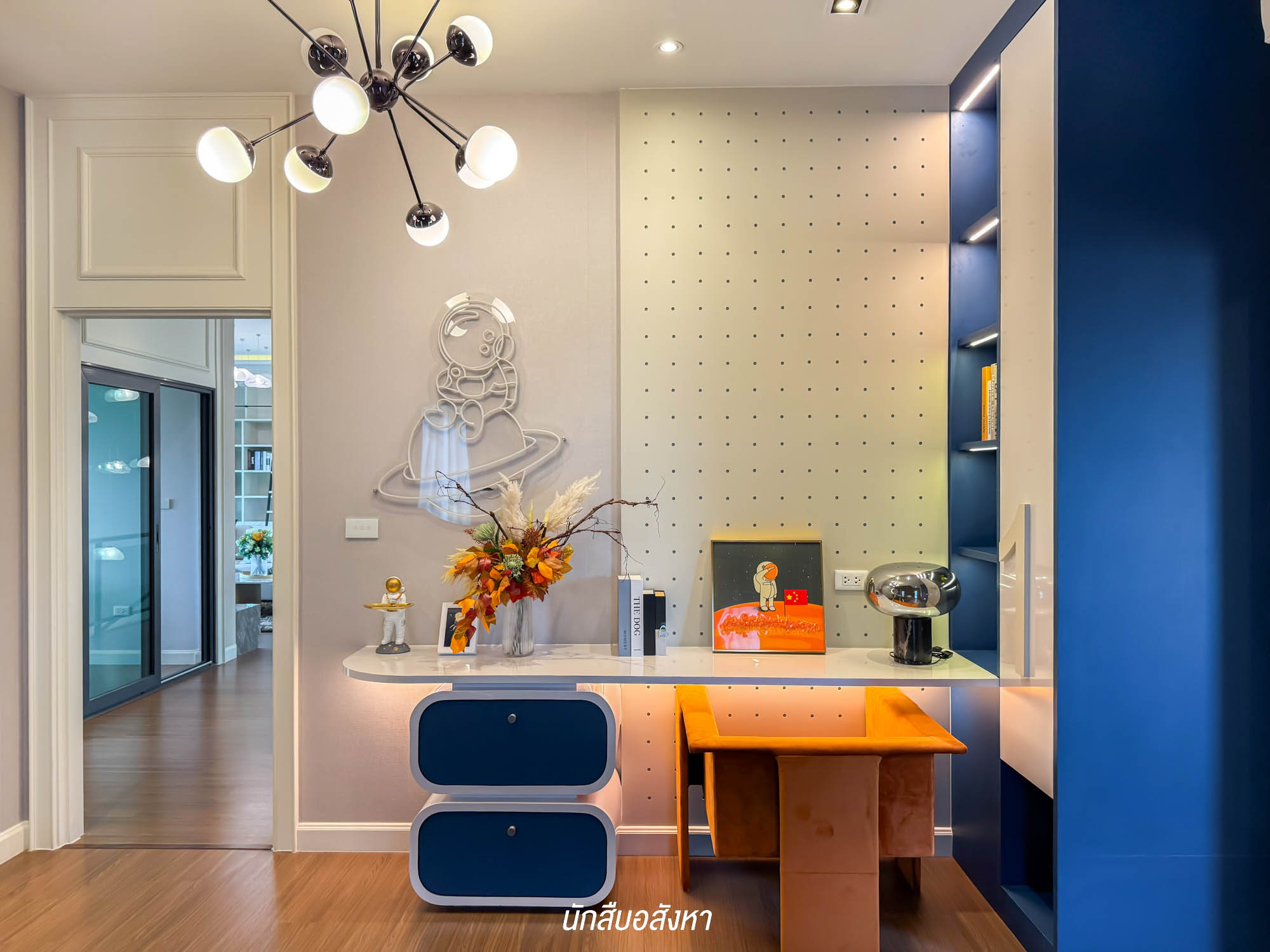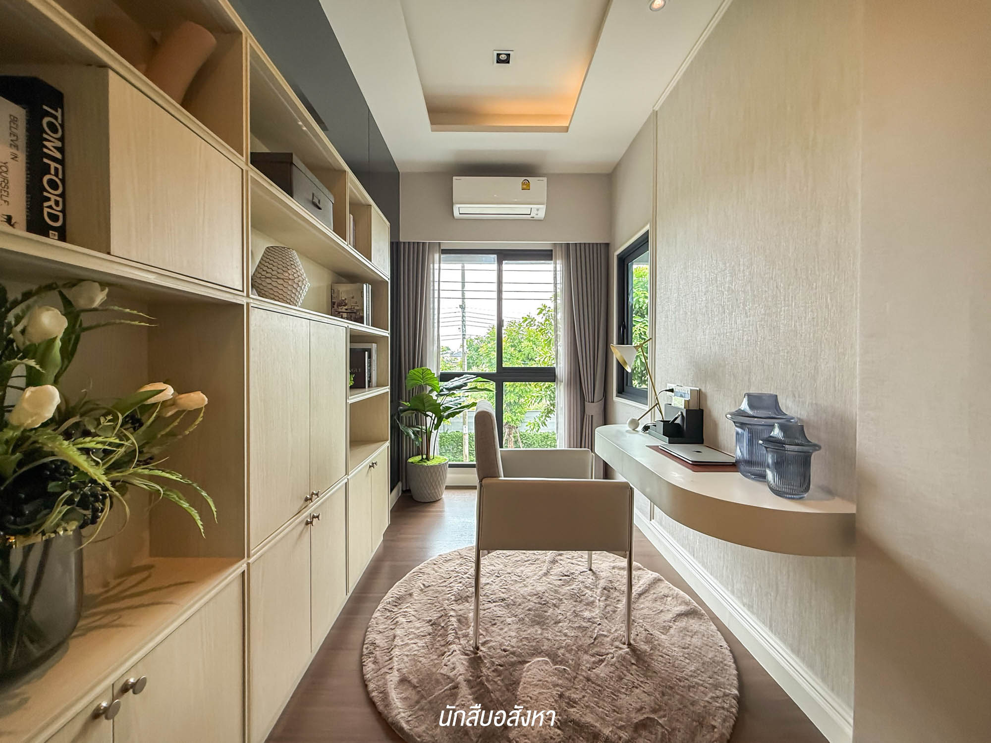 ถัดมาข้างกัน จะเป็นห้องอเนกประสงค์อีกหนึ่งห้องสามารถปรับเป็นห้องทำงาน หรือห้องพระได้ ขนาดกำลังพอดี อยู่โซนหน้าบ้าน ได้รับแสงธรรมชาติเต็ม ๆ