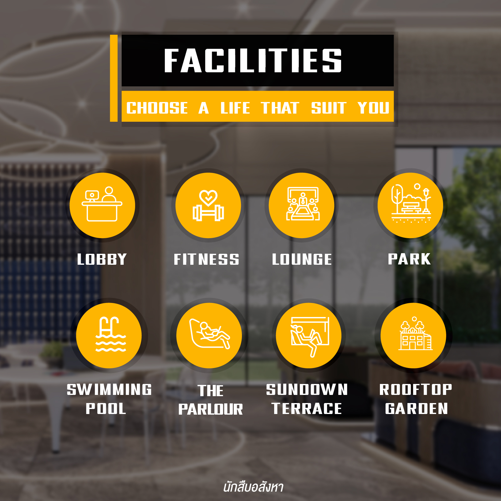 สำหรับสิ่งอำนวยความสะดวกภายในโครงการ จะมาพร้อมกับพื้นที่ส่วนกลาง 5 ชั้น บนพื้นที่กว่า 8,635 ตร.ม. หรือ 5.39 ไร่ โดยจะเริ่มต้นตั้งแต่ชั้น G ไปจนถึง Rooftop Facilities ขนาดใหญ่ เชื่อมต่อตั้งแต่ชั้น 36-39 เปิดรับบรรยากาศดี ๆ กับวิวโค้งน้ำบางกระเจ้าและสวนเบญจกิติได้อย่างเต็มที่ มีกิจกรรมหลากหลายรองรับการใช้งานที่ตอบโจทย์คนรุ่นใหม่ อาทิ สระว่ายน้ำ 6 ฟังก์ชัน ยาว 50 ม., Panoramic Fitness อุปกรณ์ครบครัน, Private Studio รองรับไลฟ์สไตล์ Work from Anywhere เป็นต้น