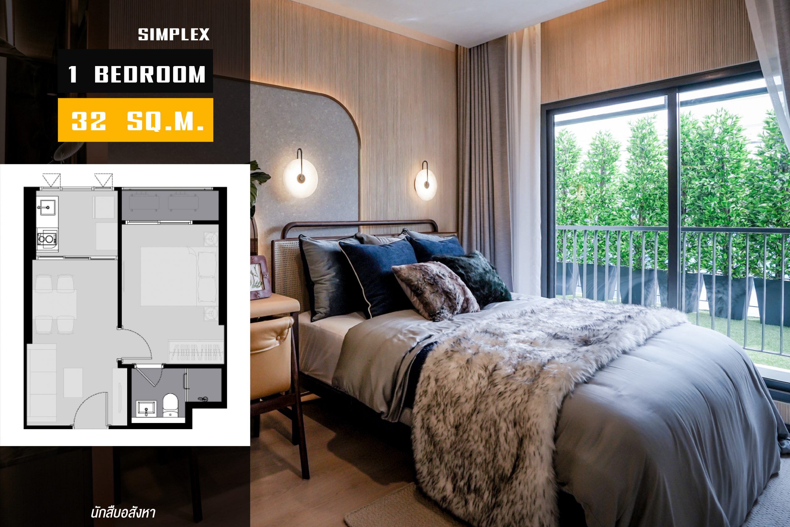 มาเริ่มกันที่ห้องแบบแรกของโครงการ ก็คือแบบ SIMPLEX มีพื้นที่ใช้สอยตั้งแต่ 26.5-75 ตร.ม. ประกอบไปด้วยห้อง 1 Bedroom, 1 Bedroom Plus และ 2 Bedroom โดยมีหน้ากว้างสุด 11 ม. จัดสรรพื้นที่ห้องนอนไว้อย่างเป็นสัดส่วน พร้อมครัวปิดและพื้นที่ Walk-in Closet ออกแบบบานกระจกพิเศษให้เอียงรับวิว ซึ่งห้องที่ผมนำมาให้ดู จะเป็นห้อง SIMPLEX 1 Bedroom พื้นที่ใช้สอย 32 ตร.ม. และ SIMPLEX 2 Bedroom พื้นที่ใช้สอย 50 ตร.ม. ครับ