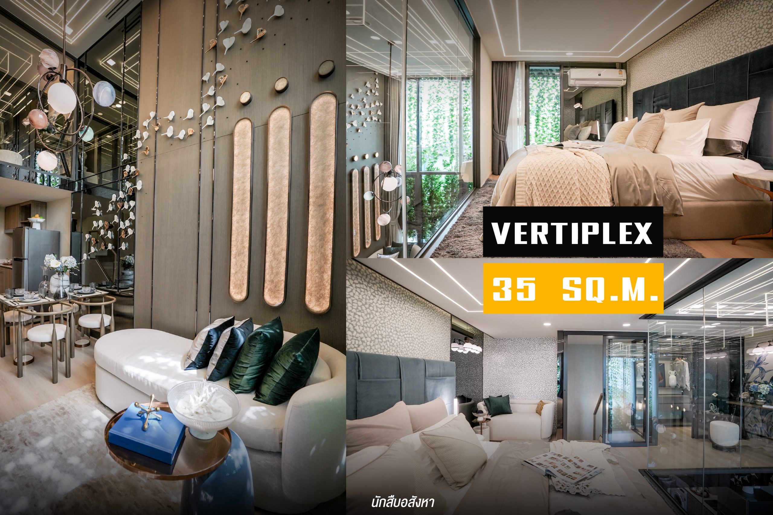 สำหรับ VERTIPLEX จะเป็นห้องชุดแบบใหม่ พร้อม Double Volume ที่สูงถึง 4.4 เมตร ออกแบบพื้นที่เพื่อรองรับไลฟ์สไตล์ที่หลากหลาย เปิดรับวิวบางกระเจ้า, วิวเมืองสุขุมวิท-อโศก และวิวสวนเบญจกิติ ได้อย่างเต็มสายตา มีขนาดพื้นที่ใช้สอยตั้งแต่ 28.5-70 ตร.ม. หน้ากว้างมากสุด 11 เมตร มีให้เลือกทั้งแบบ 1 Bedroom-2 Bedroom และยังสามารถ Customizable ได้สูงสุดถึง 3 Bedroom พร้อม Walk-in Closet ขนาดใหญ่ ซึ่งสำหรับห้องที่ผมนำมาให้ชม จะเป็น Vertiplex 1 Bedroom พื้นที่ใช้สอย 35 ตร.ม. ครับ