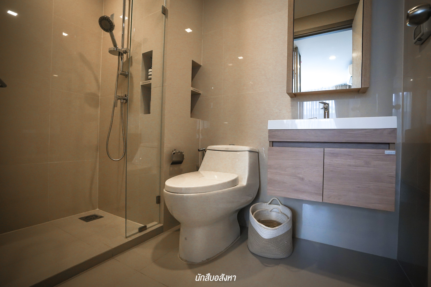 อีกด้านหนึ่งจะเป็นห้องน้ำ แยกโซนแห้ง-โซนเปียก ให้ชุดสุขภัณฑ์ครบเช่นเดียวกันครับ