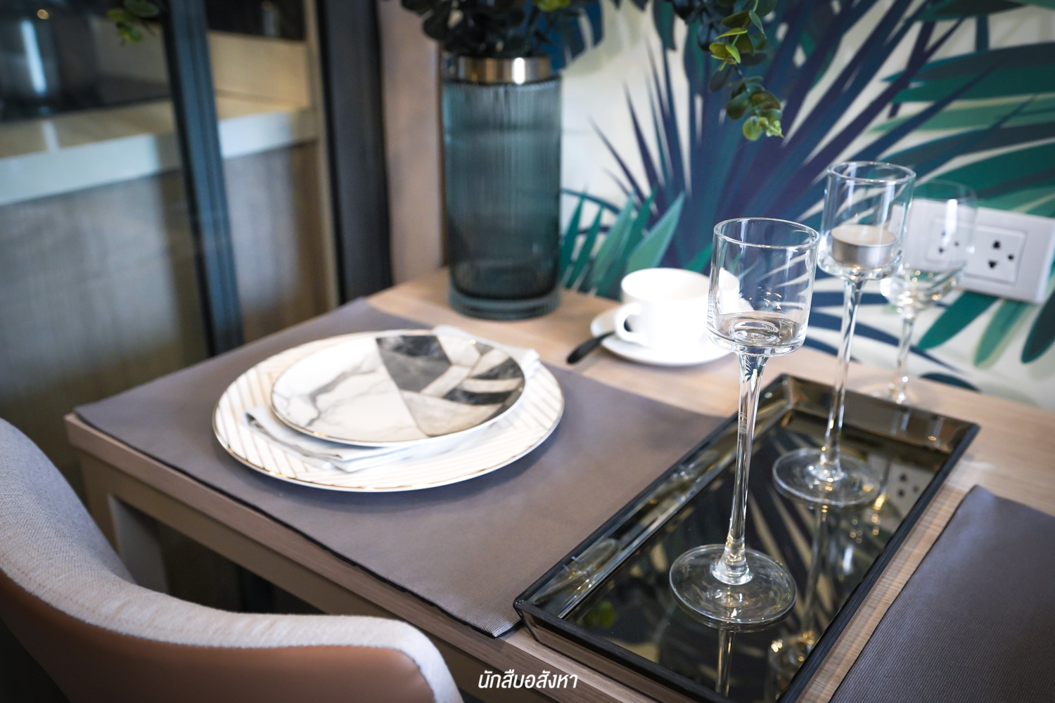 โครงการให้ชุดโต๊ะรับประทานอาหารสำหรับ 2 ที่นั่ง จัดเก้าอี้แบบนั่งข้างกันมาให้ ซึ่งในส่วนนี้ลูกบ้านสามารถจัดมุมใหม่เป็นแบบนั่งคู่ตรงข้ามก็ได้ แล้วแต่ความชอบ ความถนัดเลยครับ