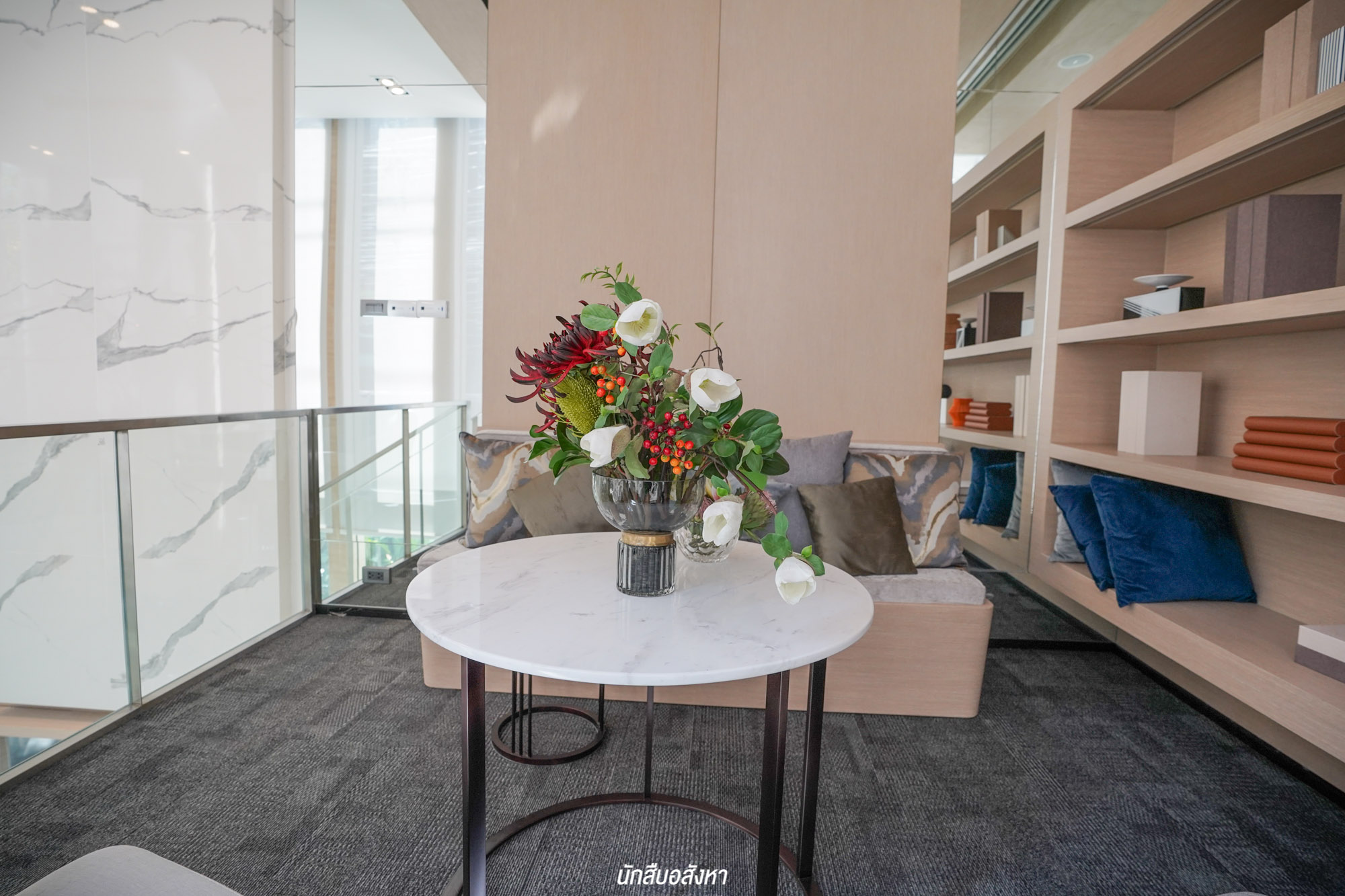 ชั้นบนเป็นพื้นที่ Business Lounge พร้อมโซฟา สามารถนั่งเล่น พักผ่อน พูดคุยงานหรือทำงานในบริเวณนี้ได้ พร้อมกระจกบานใหญ่ รับแสงธรรมชาติและชมวิวครับ