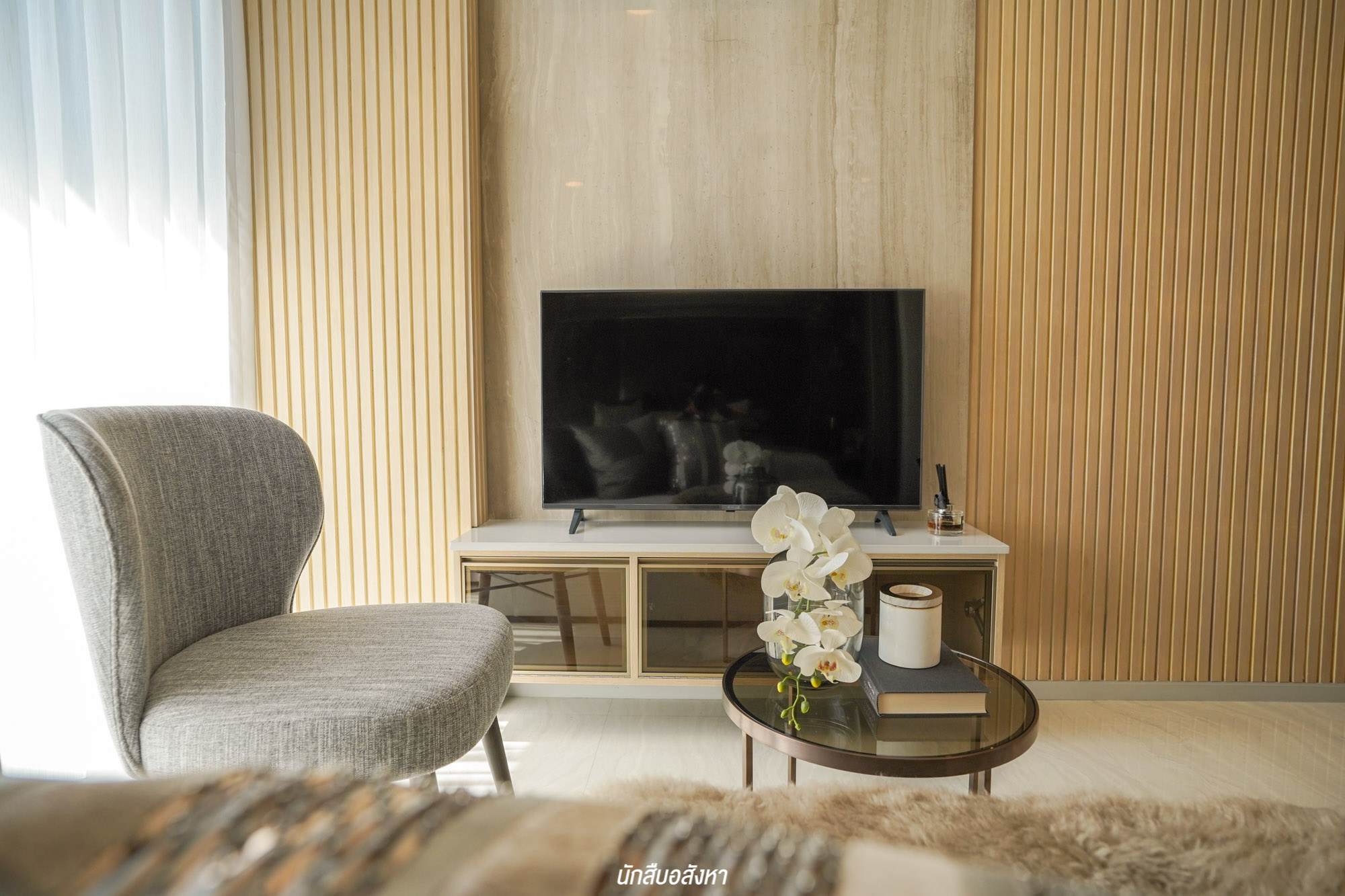 ถัดเข้ามาด้านในพบกับพื้นที่ Living Area เหลือระยะระหว่างตั้งทีวี และสามารถวางโซฟาขนาด 2-3 ที่นั่ง ขนาดกำลังพอเหมาะ