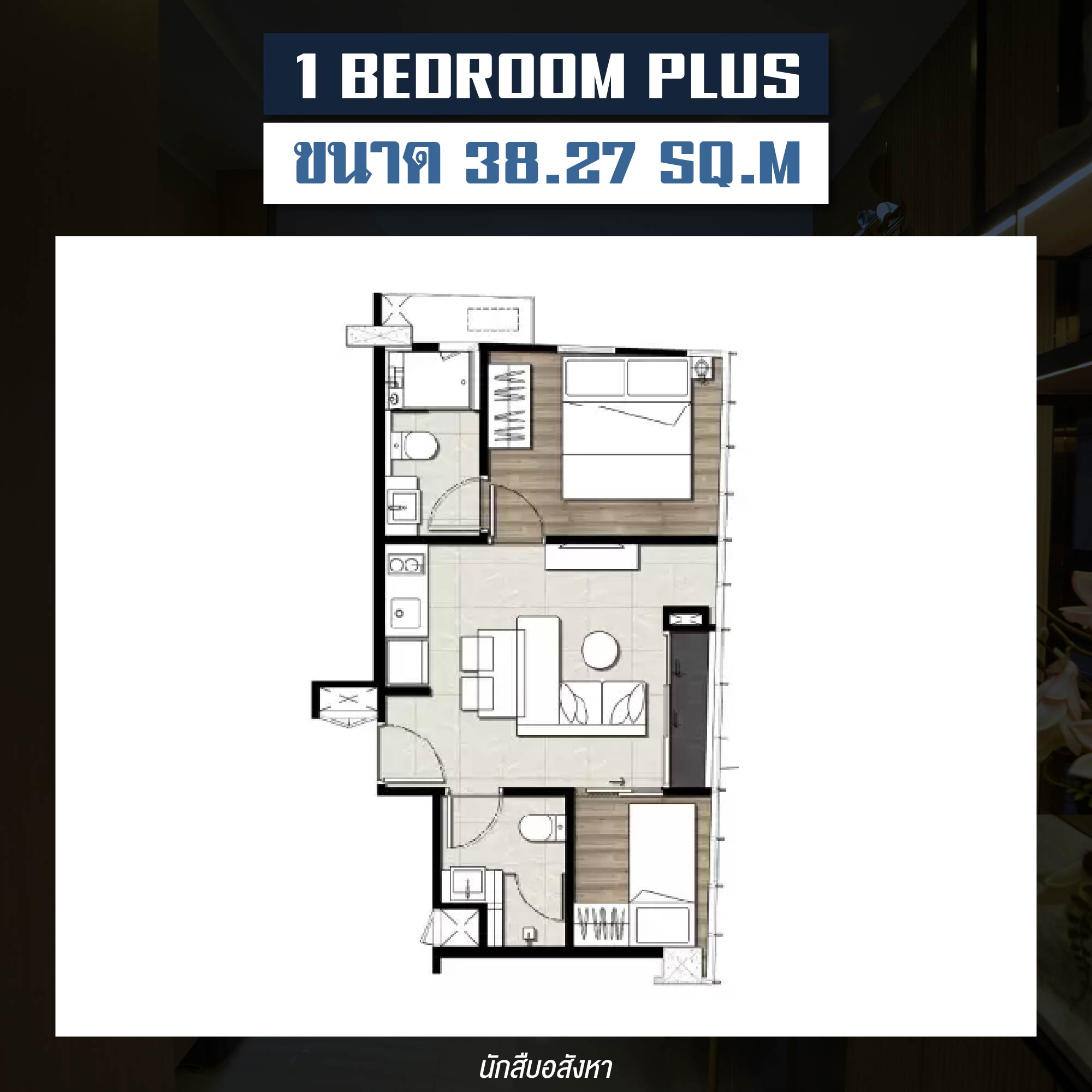 ห้อง 1 Bedroom Plus ขนาด 38.27 ตร.ม.