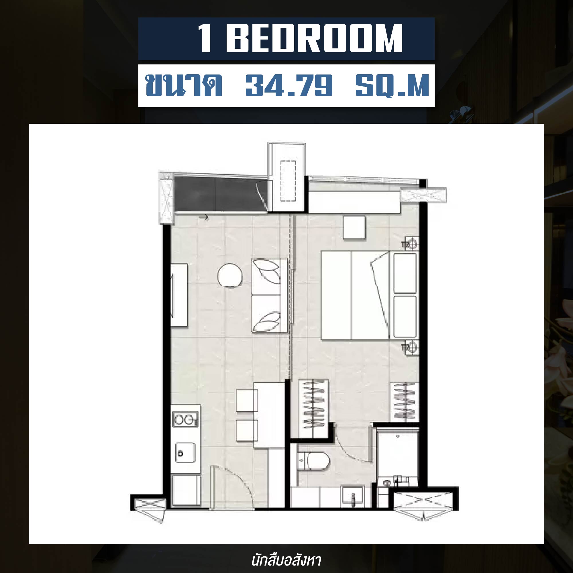 ถัดมาห้อง 1 Bedroom ขนาดพื้นที่ 34.79 ตร.ม.