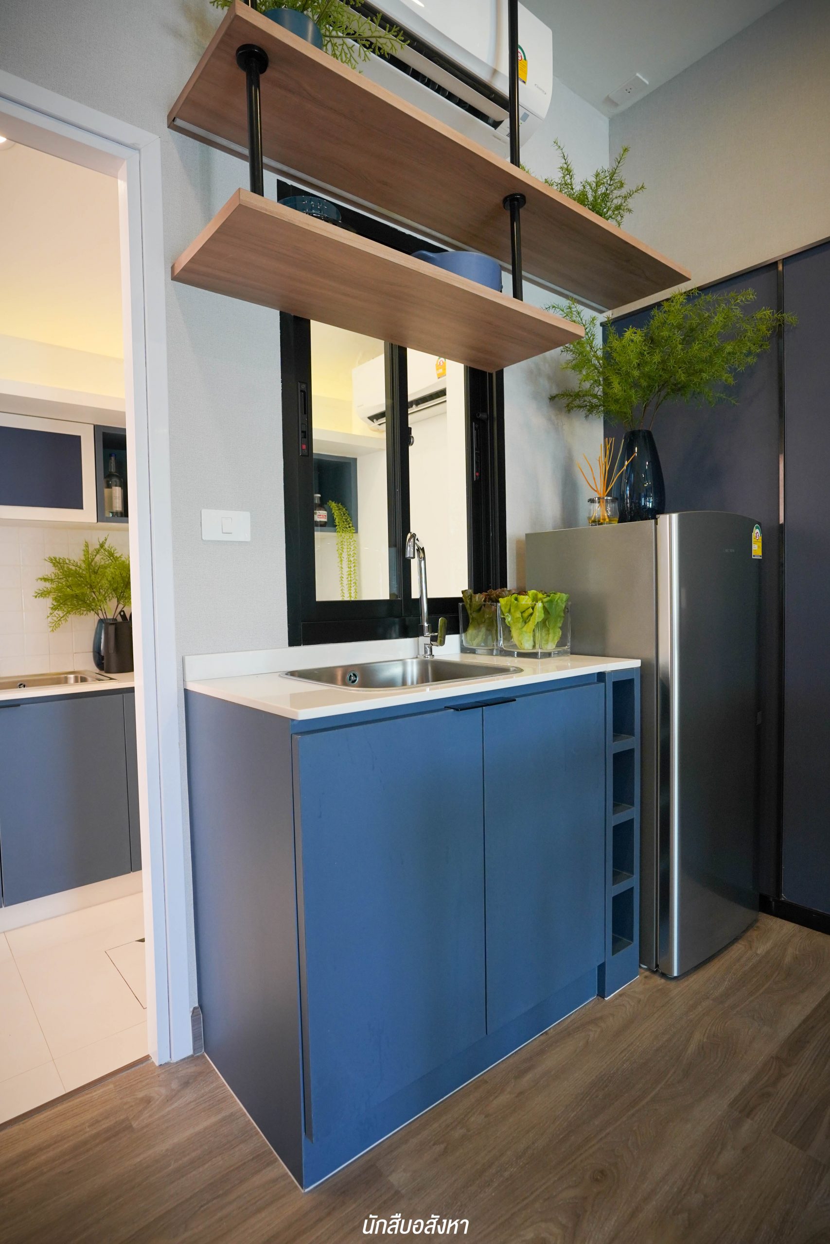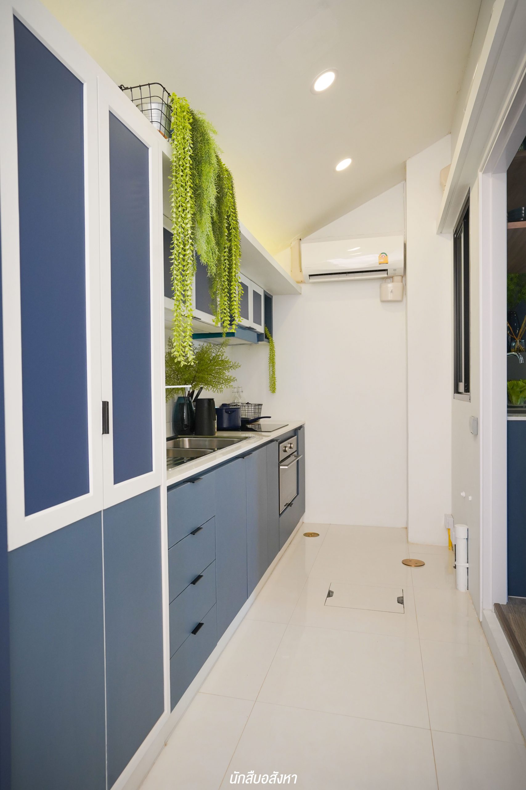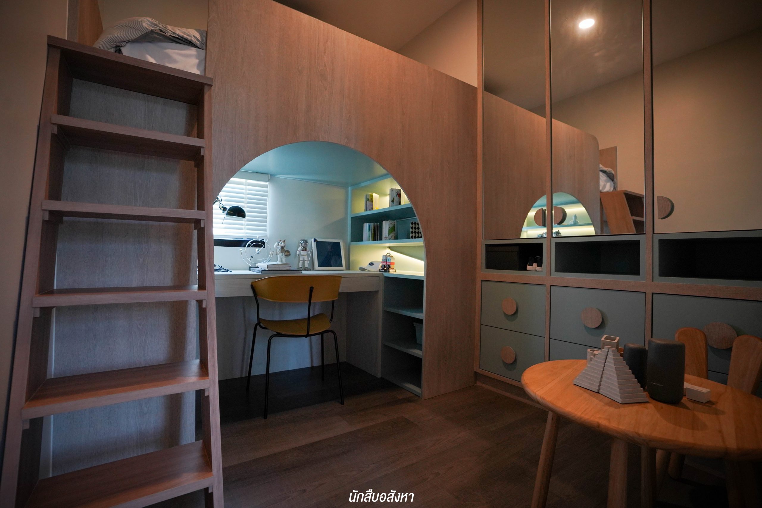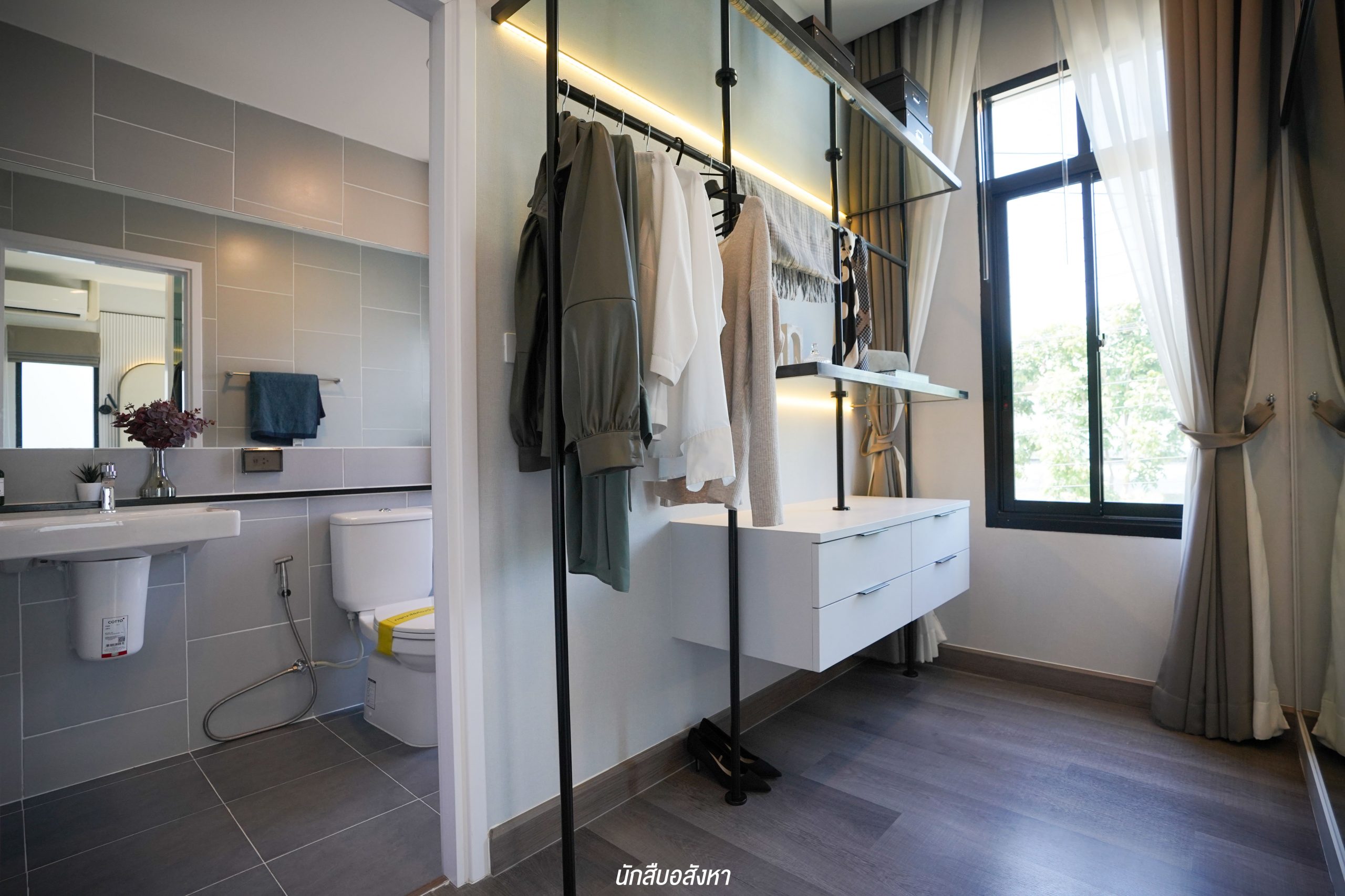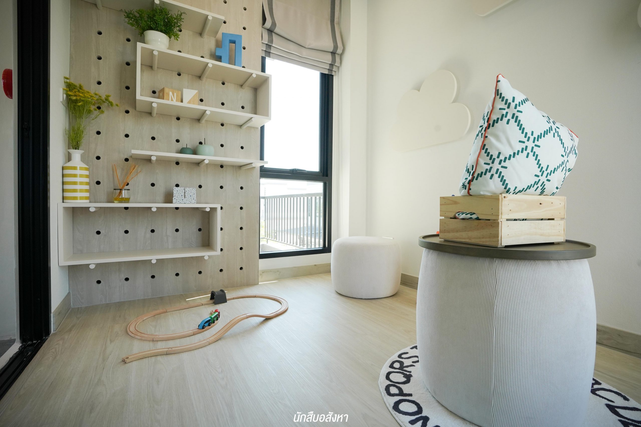 อีกหนึ่งไอเดียดี ๆ ที่บ้านตัวอย่างทำไว้ให้ดู บริเวณหน้าบันไดทำเป็นมุมซักรีด ทำให้เห็นได้ว่า โซนซักล้างไม่จำเป็นต้องอยู่บริเวณหลังบ้านเสมอไป