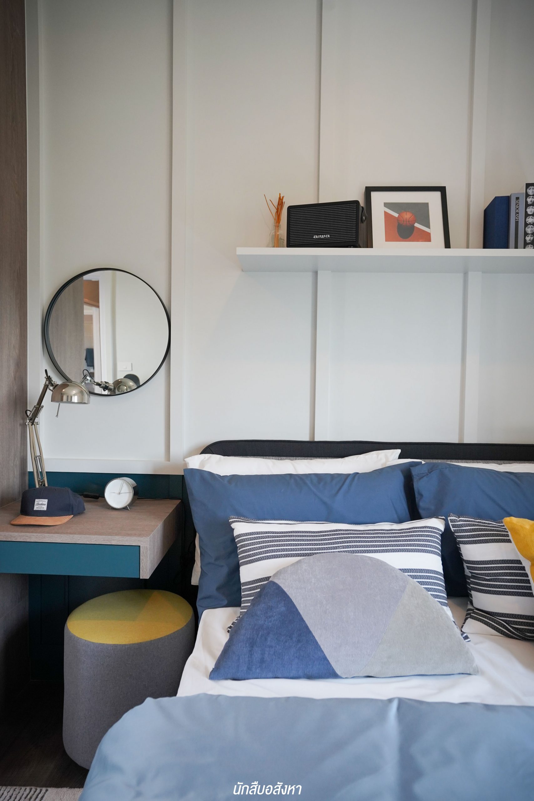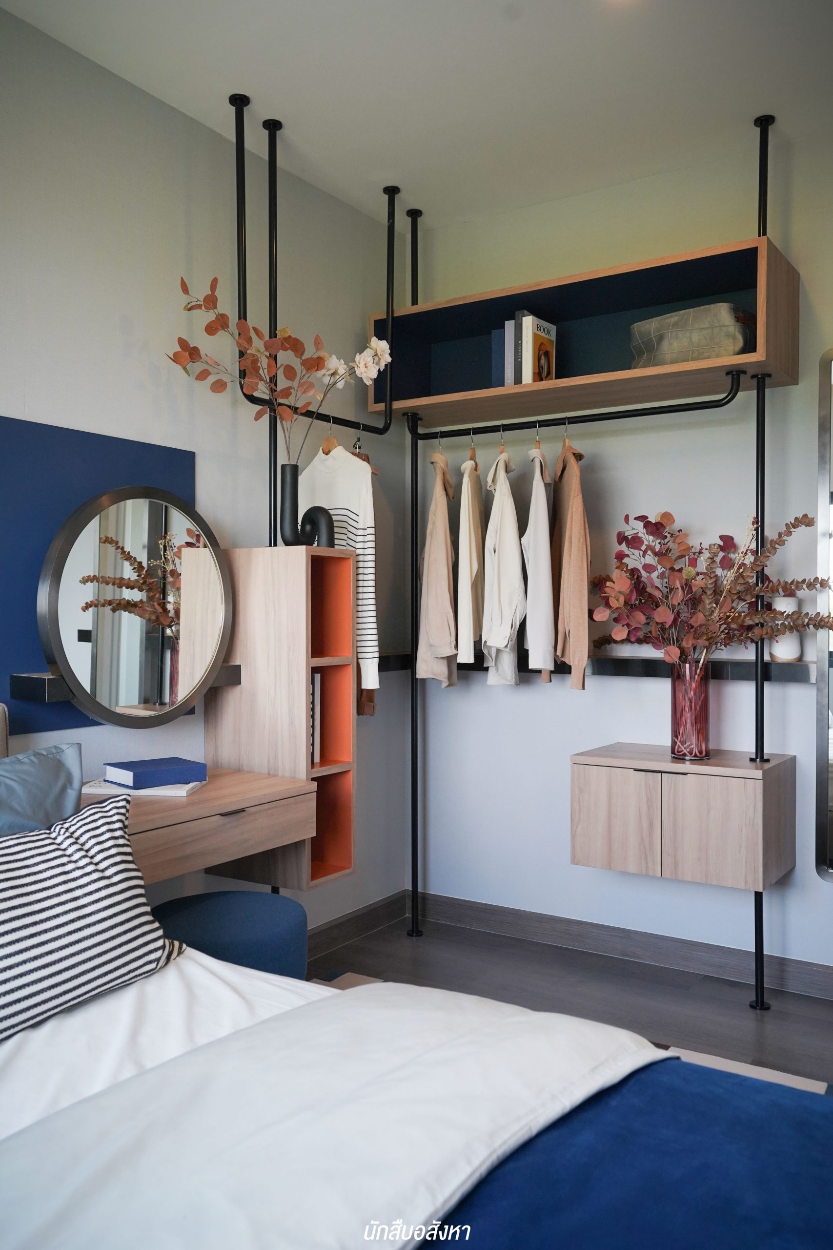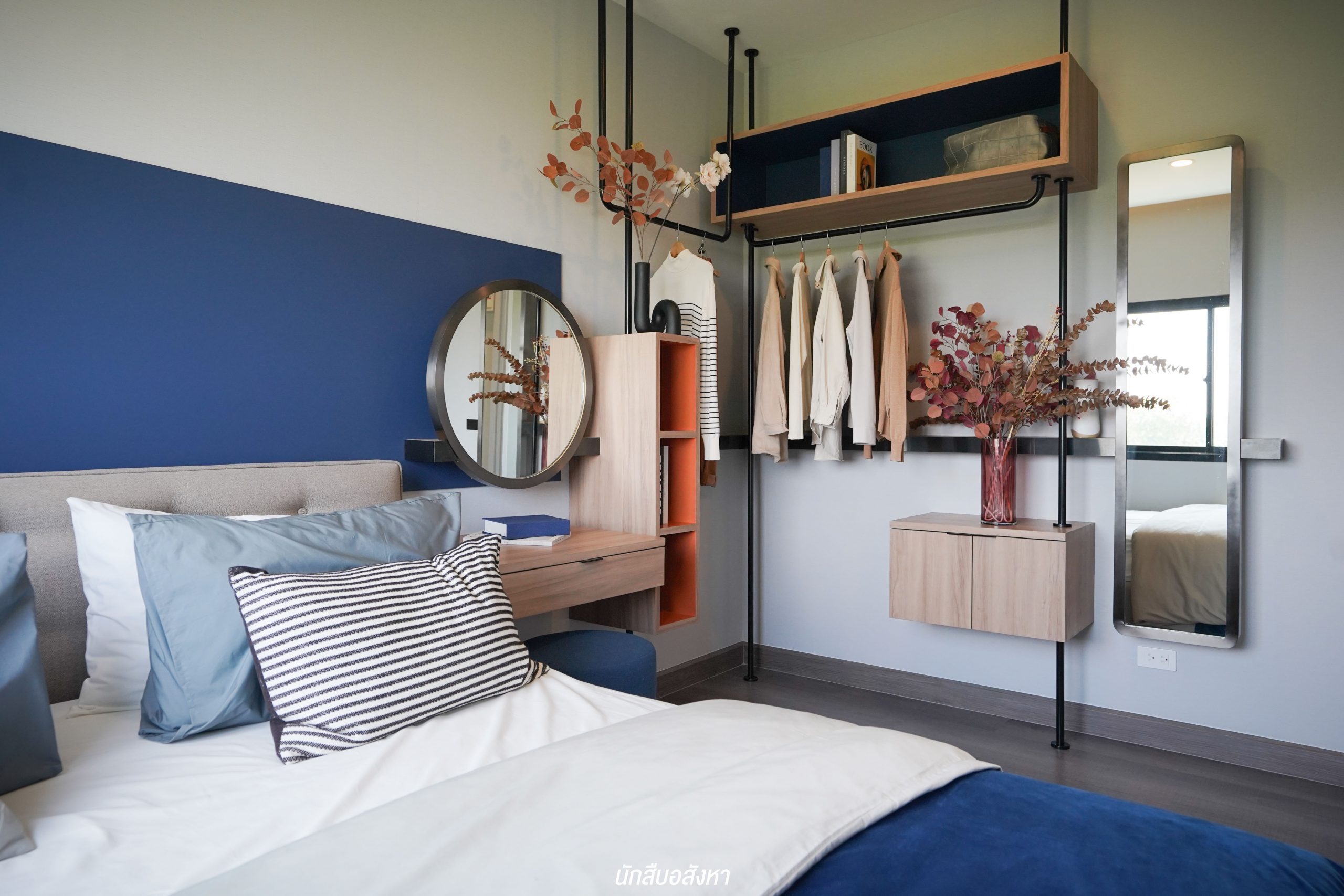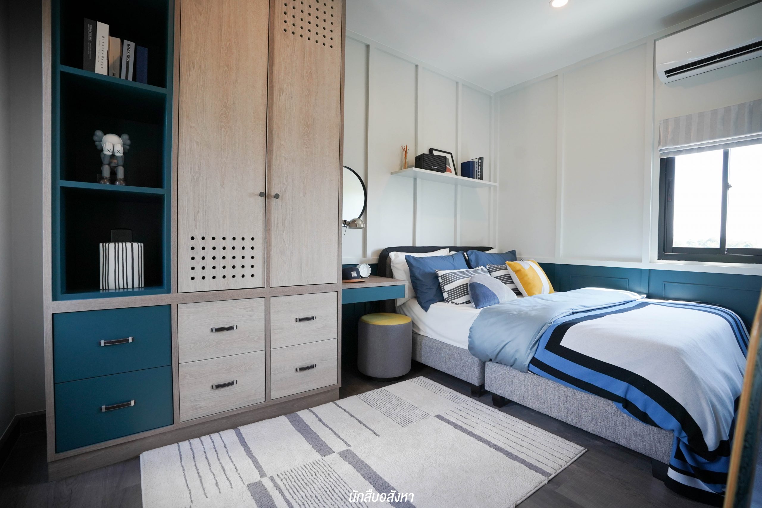 อีกหนึ่งไอเดียดี ๆ ที่บ้านตัวอย่างทำไว้ให้ดู บริเวณหน้าบันไดทำเป็นมุมซักรีด ทำให้เห็นได้ว่า โซนซักล้างไม่จำเป็นต้องอยู่บริเวณหลังบ้านเสมอไป
