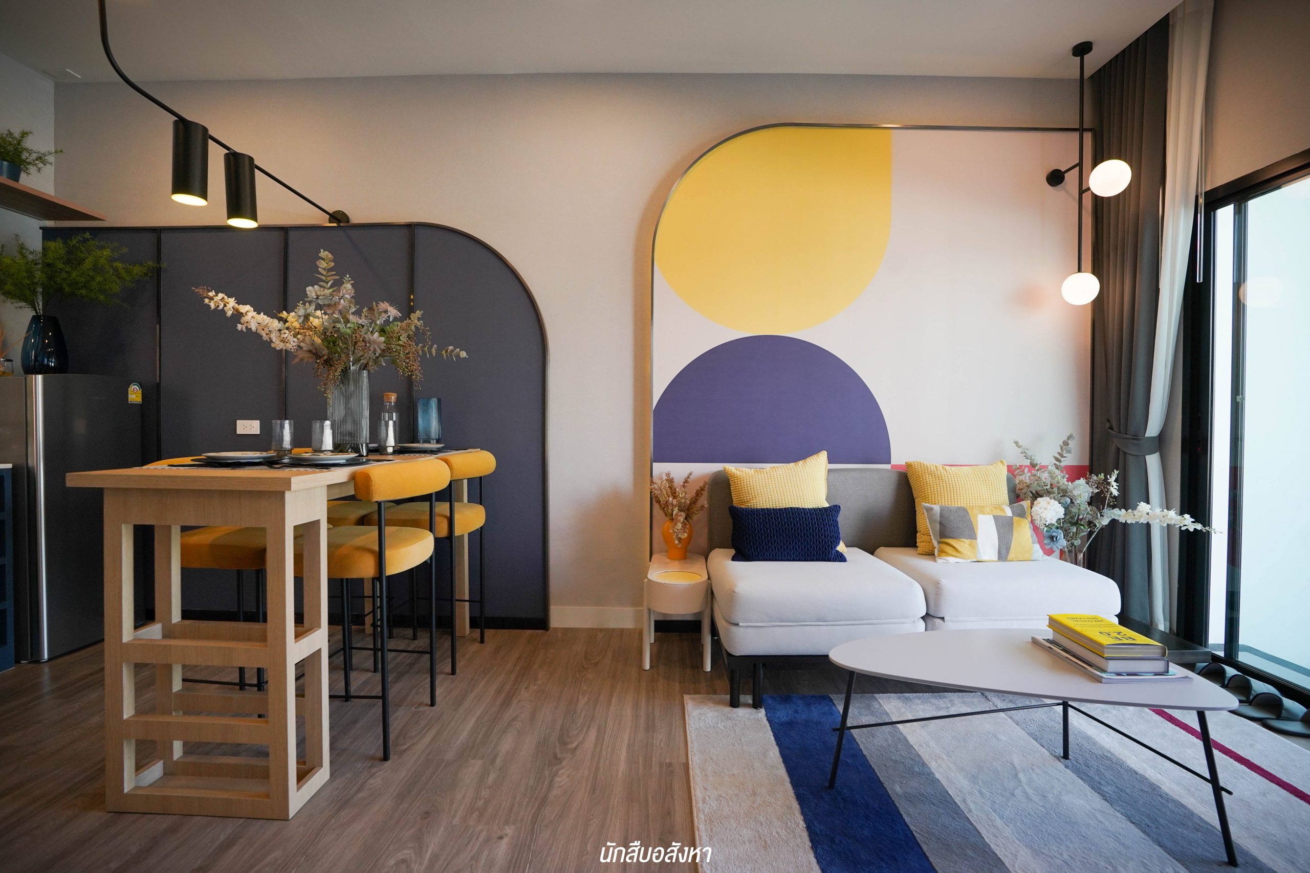 ถัดเข้ามาจะเป็นโซนรับประทานอาหาร เหมาะสำหรับชุดโต๊ะเก้าอี้ขนาด 4 ที่นั่ง หรืออีกหนึ่งไอเดียที่คนนิยมทำกันก็คือ เคาน์เตอร์บาร์ เหมาะกับพื้นที่ตรงนี้มาก ๆ ครับ