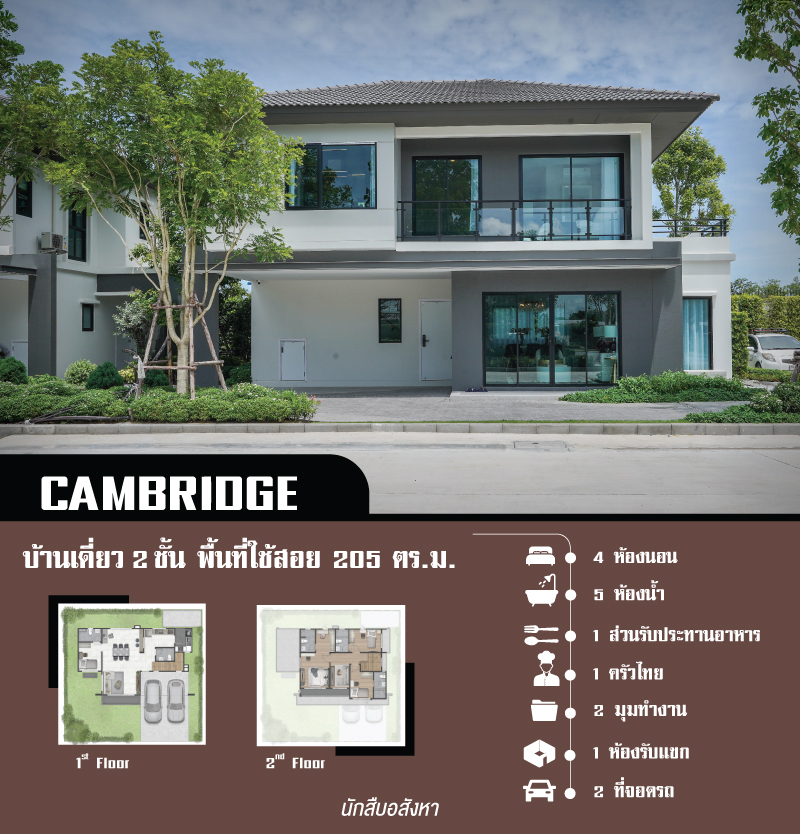 CAMBRIDGE บ้านเดี่ยว 2 ชั้น พื้นที่ใช้สอย 205 ตร.ม.