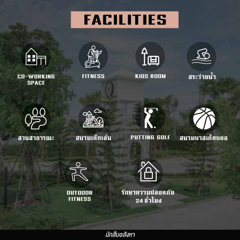 มาดูในส่วนของพื้นที่ส่วนกลางใหญ่ มีขนาดกว่า 1 ไร่ บรรยากาศสไตล์อังกฤษที่มีความทันสมัย พร้อม Facilities จัดเต็ม โครงการจัดสรรพื้นที่ได้ค่อนข้างคุ้มค่ามากๆ โดยพื้นที่สีเขียวจะถูกกระจายอยู่ทั่วโครงการ เพื่อให้ลูกบ้านรู้สึกเข้าถึงและใกล้ชิดธรรมชาติ โดย Facilities จะประกอบไปด้วย