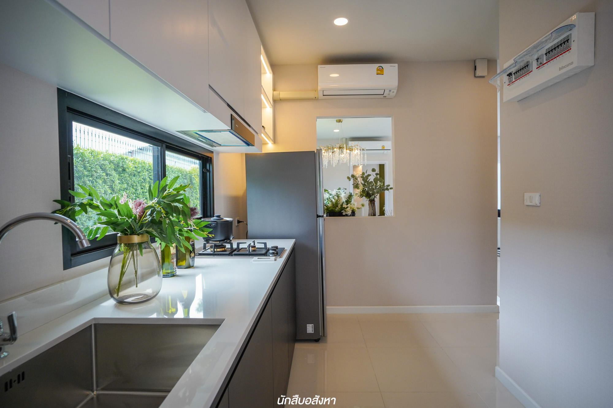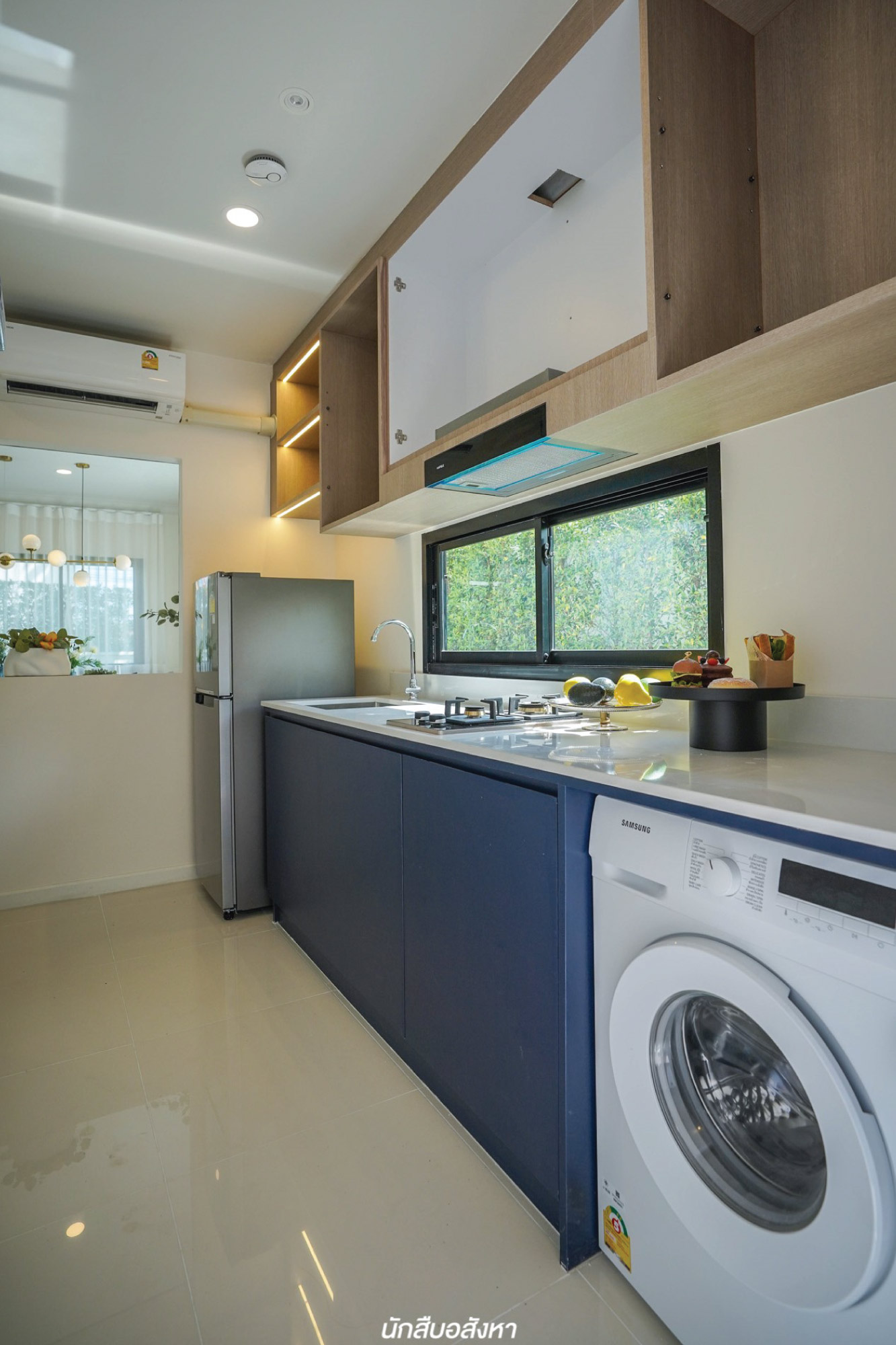 ถัดมาจะเป็นส่วนของห้องครัว ผมมองว่าสเปซมีความลงตัว ทางเดินเข้าออกกว้างใช้งานได้พร้อมๆ กัน  แยกครัวชัดเจน