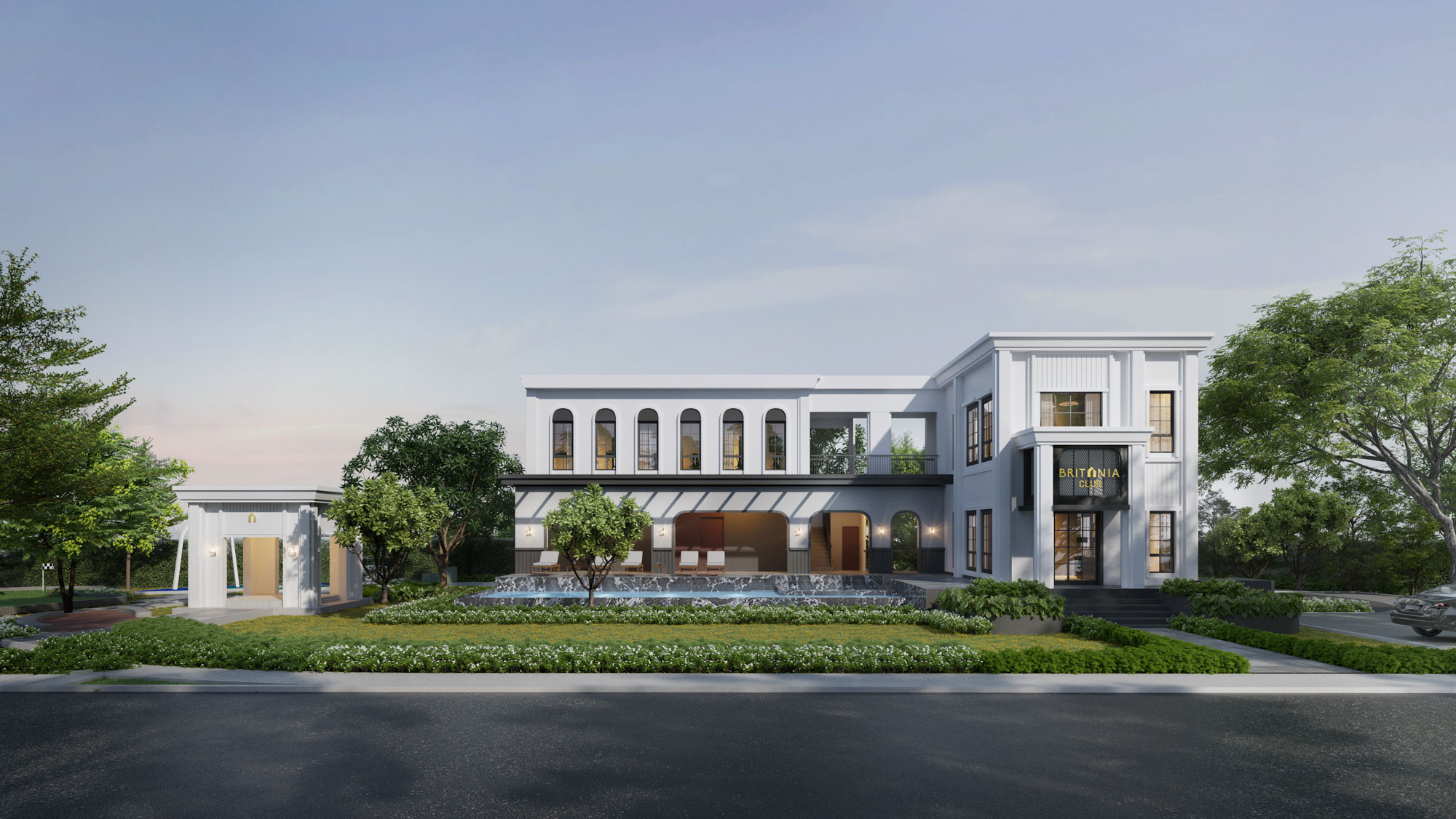 แบบบ้านสไตล์ Modern British เรียบหรูร่วมสมัย เช่นเดียวกับการออกแบบคลับเฮาส์ เพื่อให้ดูกลมกลืนไปทั้งโครงการ โดยการดึงเอาเอกลักษณ์ของสถาปัตยกรรมอังกฤษ เช่น ความโค้งมนของสถาปัตยกรรมยุคคลาสสิก สอดแทรกใส่รายละเอียดเล็กๆ น้อยๆ ผ่านซุ้มประตู คลับเฮาส์ในโครงการ และก็ถือเป็นไฮไลท์ของแบรนด์ที่จะเน้น Landscape ให้โครงการน่าอยู่ ในทุกๆ โครงการครับ