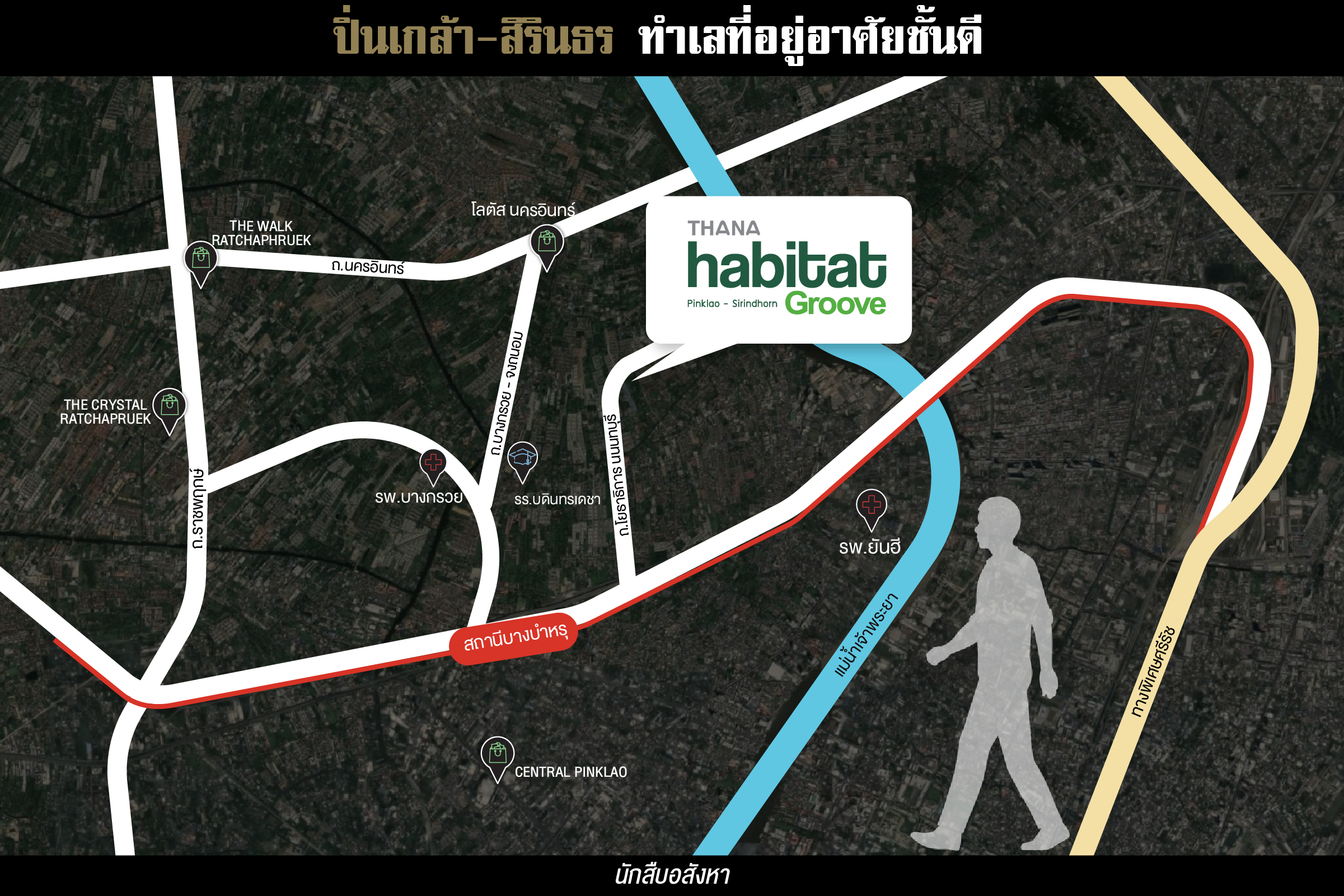 สำหรับโครงการ ธนาฮาบิแทต กรู๊ฟ ปิ่นเกล้า-สิรินธร (Thanahabitat Groove Pinklao – Sirindhorn) เป็นโครงการทําเลเชื่อมต่อปิ่นเกล้ากับถนนนครอินทร์ พื้นที่โครงการ 23-3-43 ไร่ มีแบบบ้านให้เลือกทั้งบ้านเดี่ยว และบ้านแฝด จำนวน 125 ยูนิต มาพร้อมแนวคิด “Rhythm Of your Life” It’s my rhythm. It’s my Home. ขยายพื้นที่ความสุข ผสานสมดุลธรรมชาติ สะดวกทุกการเดินทาง สร้างความสุขทุกจังหวะชีวิต