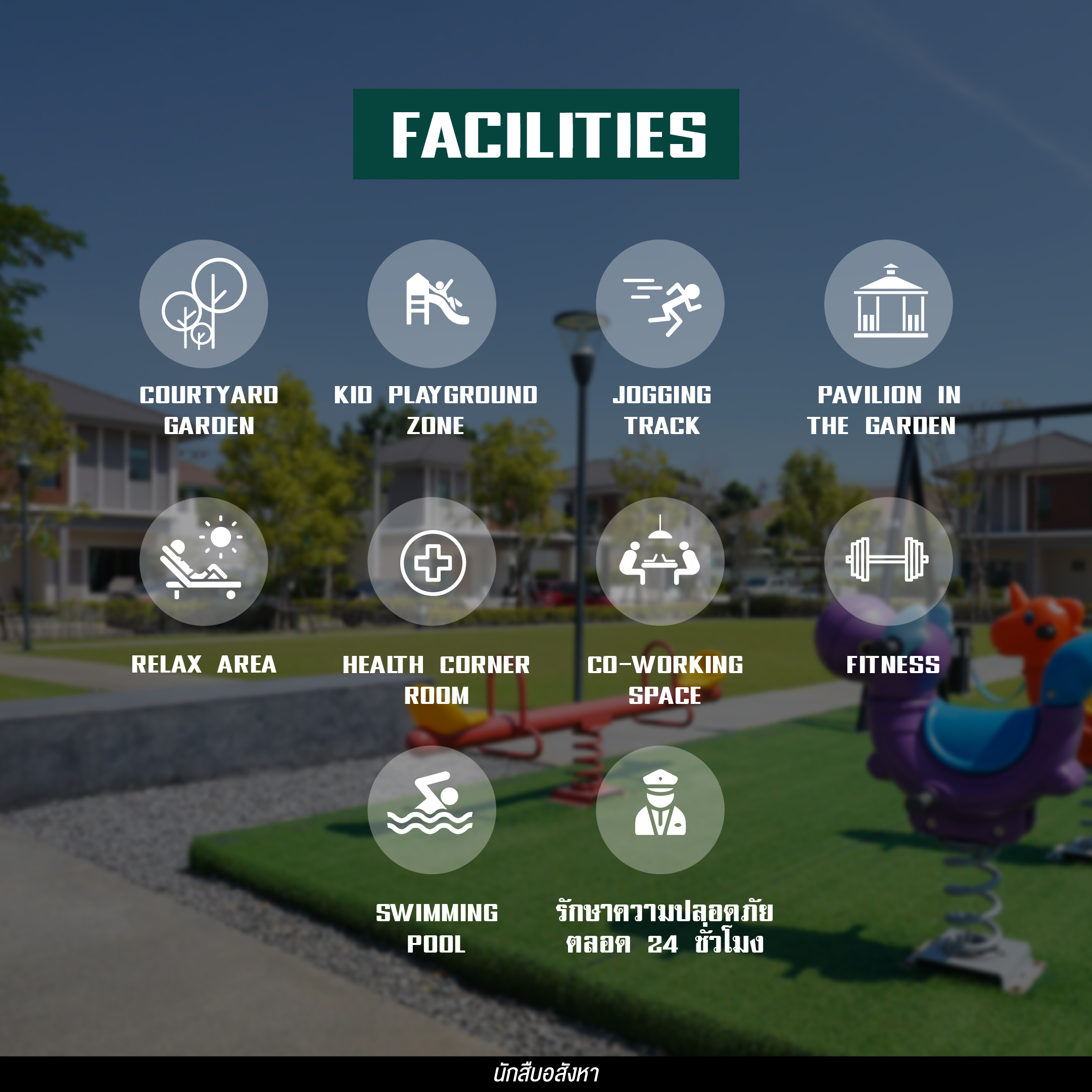 ส่วนกลาง : พื้นที่ส่วนกลางเป็นไฮไลท์ของทางโครงการอยู่แล้วครับ โดยเฉพาะเรื่องธรรมชาติ สวนสดชื่น และเรื่องการเอาใจใส่ผู้สูงอายุนี่หายห่วงเลยครับ ดูจากส่วนกลางต่างๆที่จัดมาให้ เช่น Clubhouse Open space Courtyard Garden, universal design ลองรับผู้สูงอายุ Ramp, ทางเข้าและทางเดิน Health corner room, Co working space, Fitness พร้อมอุกรณ์ออกกำลังกายอย่างครบครัน, สระว่ายน้ําระบบเกลือ แยกสระว่ายน้ำเด็ก-ผู้ใหญ่ Pool Terrace สำหรับพักผ่อน พร้อมราวจับเดินออกกำลังกายภายในสระว่ายน้ำสำหรับผู้สูงอายุ พร้อมด้วยระบบรักษาความปลอดภัย 24 ชั่วโมง