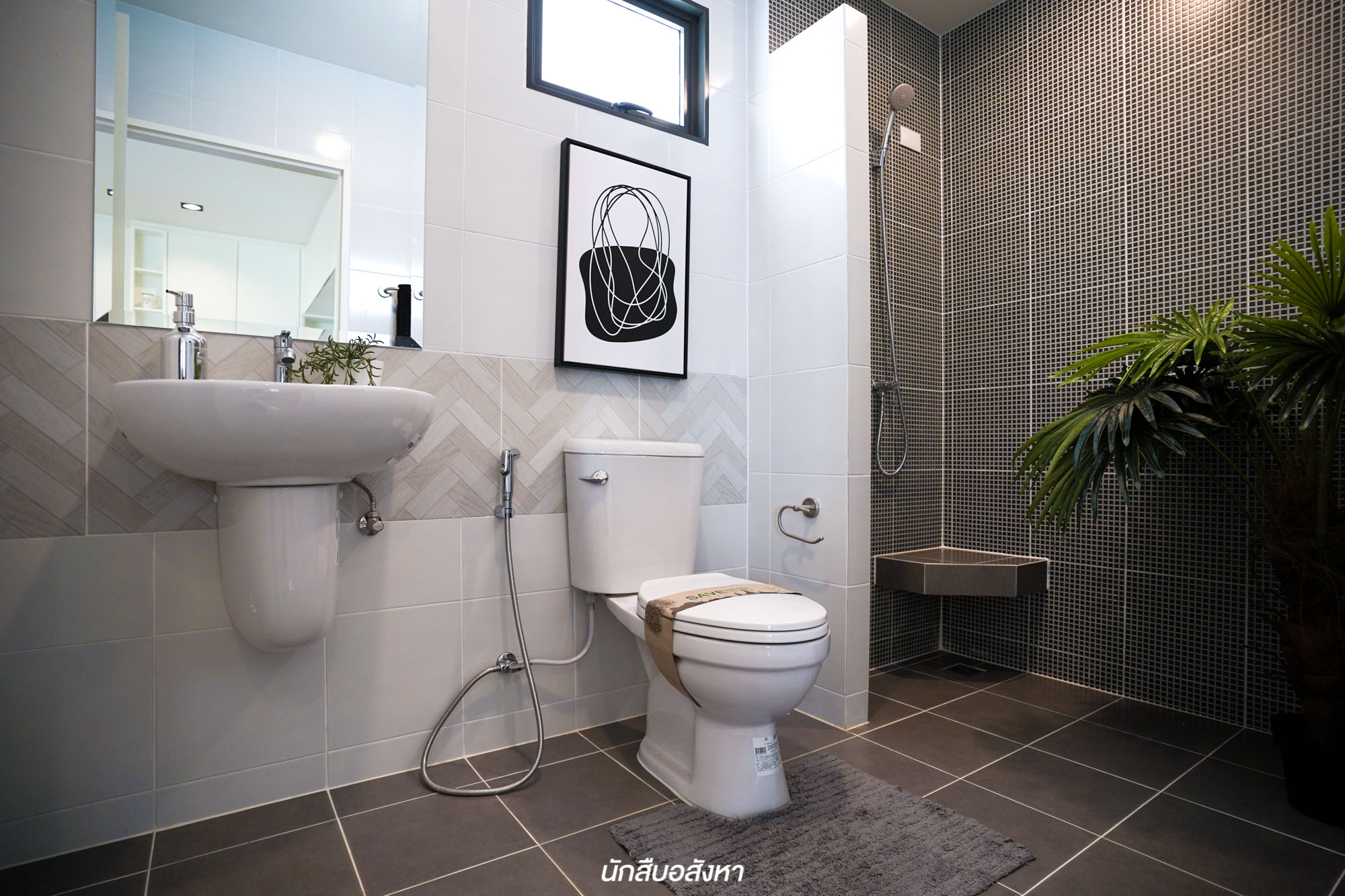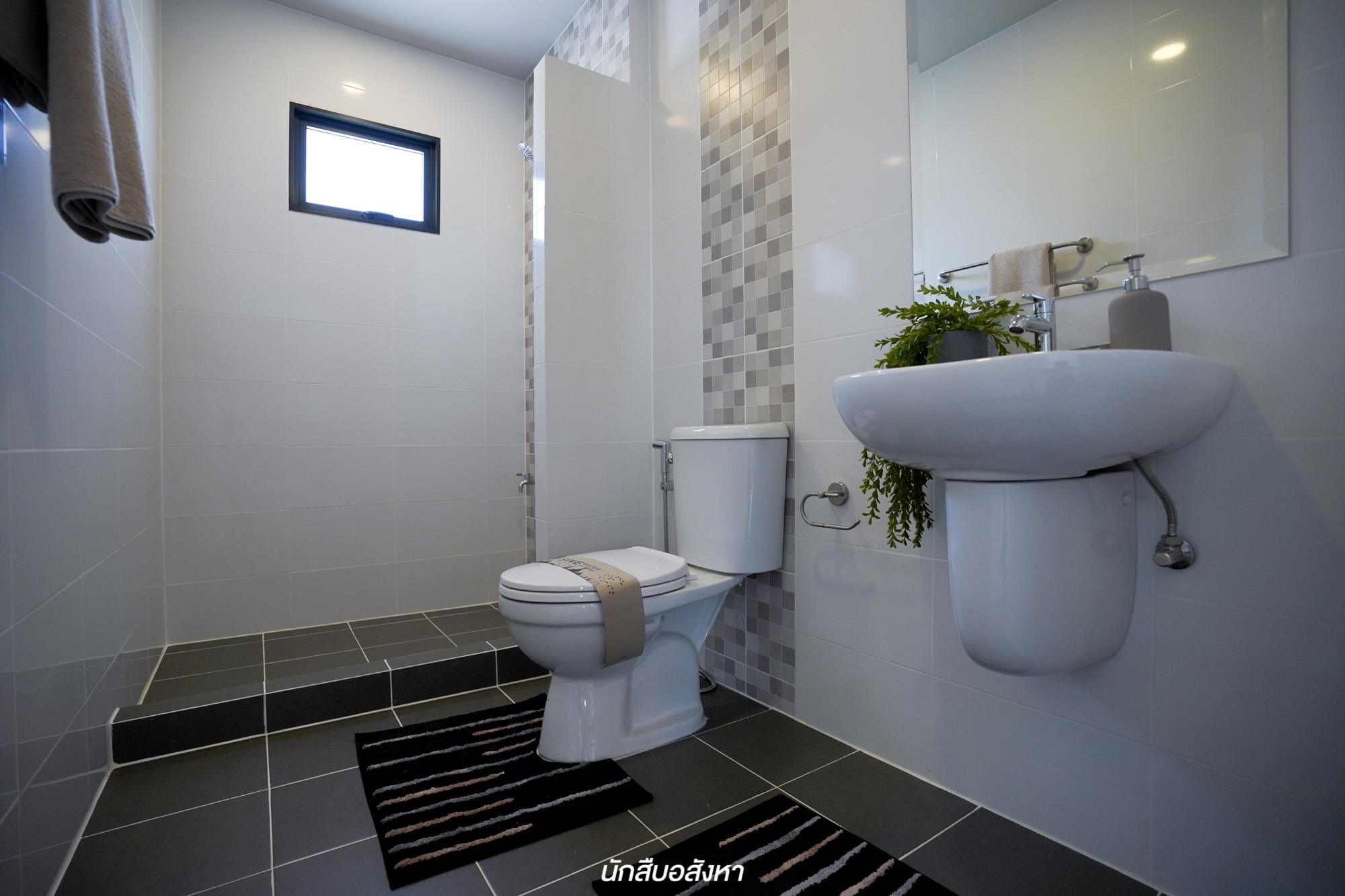 มีความเป็นสัดส่วนสะดวกในการใช้งานและทําความสะอาด ประตูห้องนํ้าชั้นล่างมีความกว้างเป็นพิเศษรองรับการใช้งาน wheelchair เพื่อการดูแลผู้สูงวัยในอนาคต