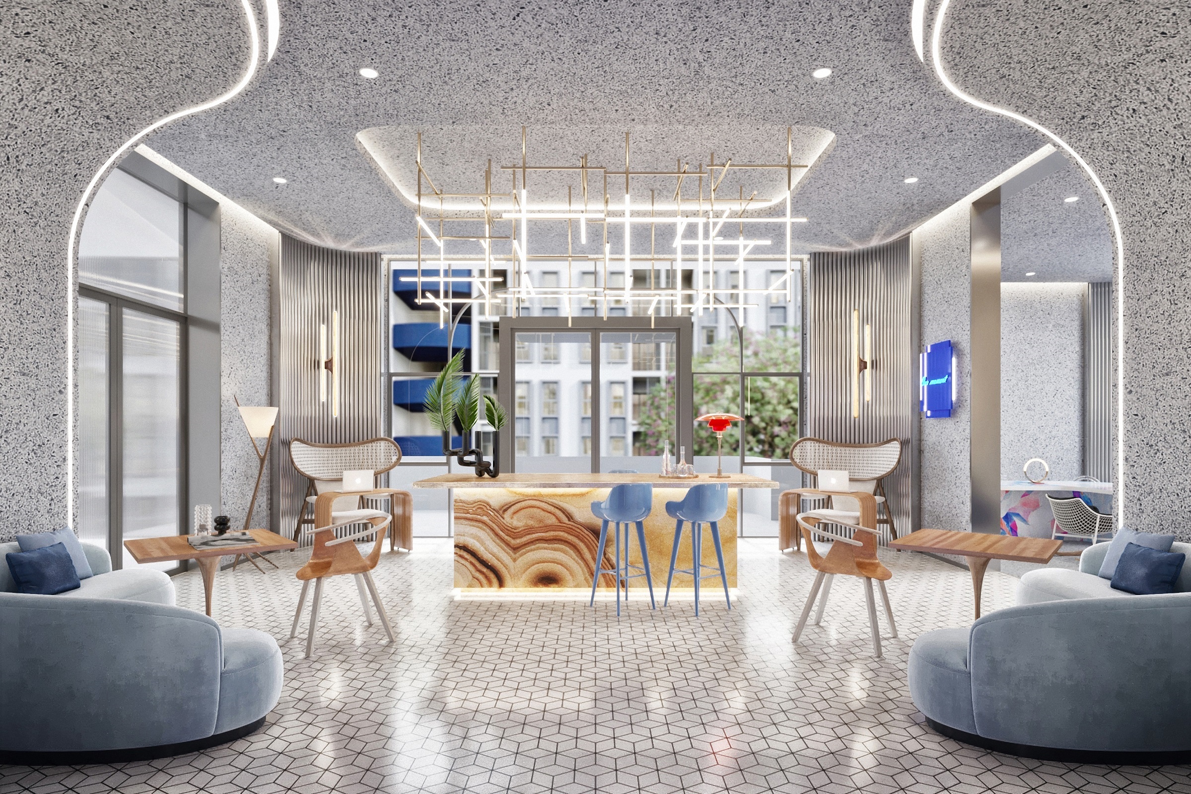 Foyer Lobby โถงต้อนรับแบบ Semi – Outdoor พื้นที่ด้านหน้าที่พร้อมรับรองแขก ก่อนเข้าสู่พื้นที่ส่วนกลางใจกลางโครงการ
