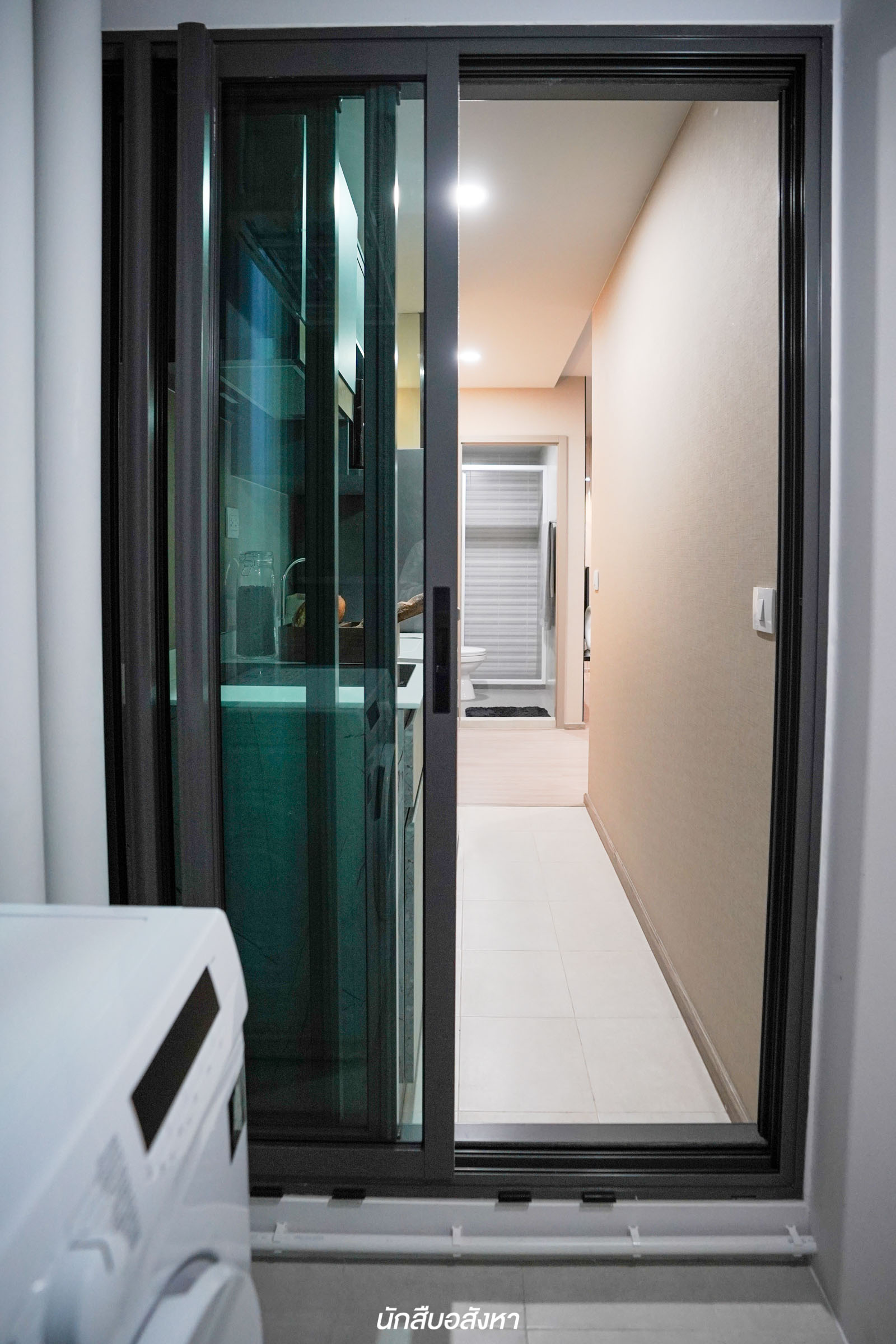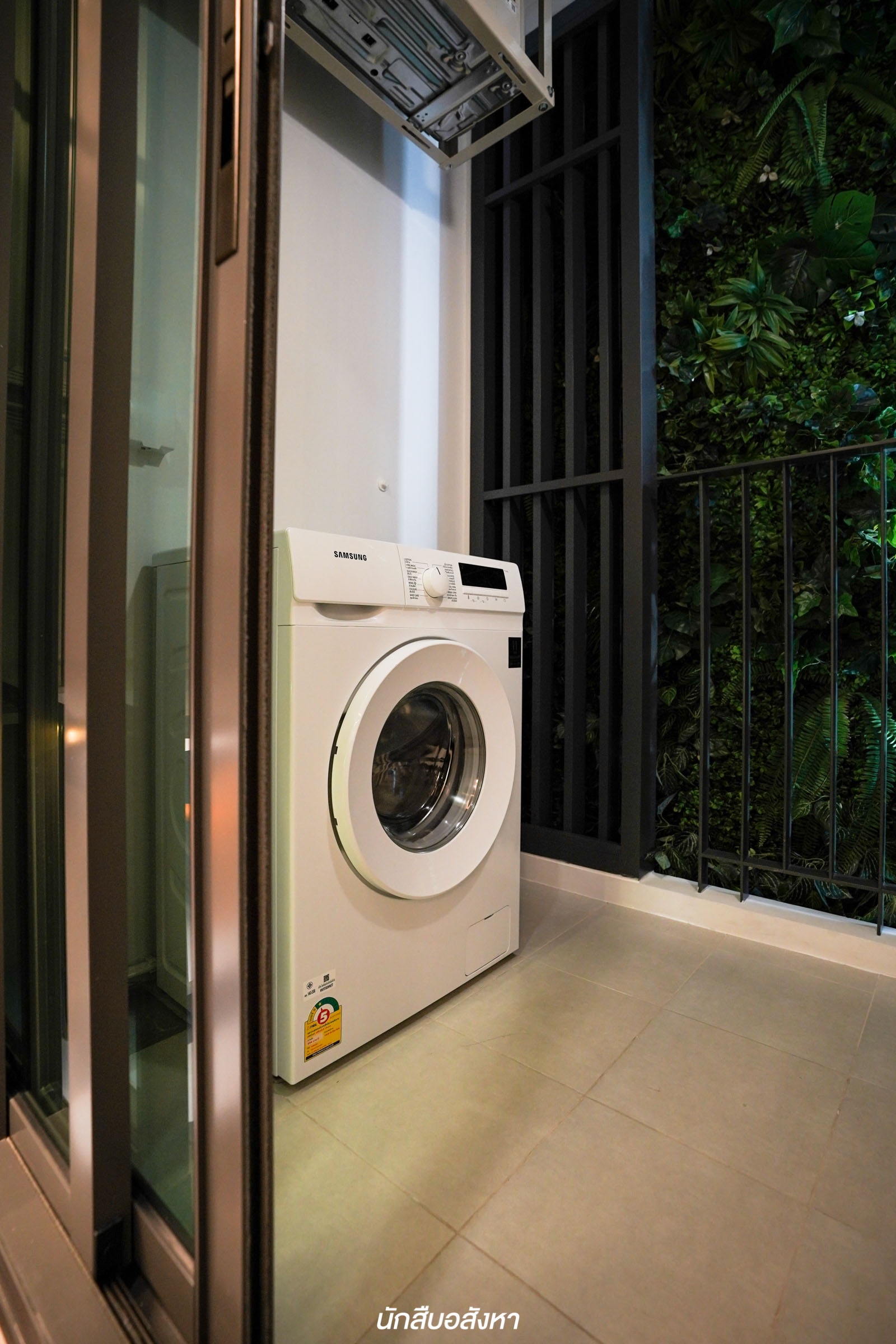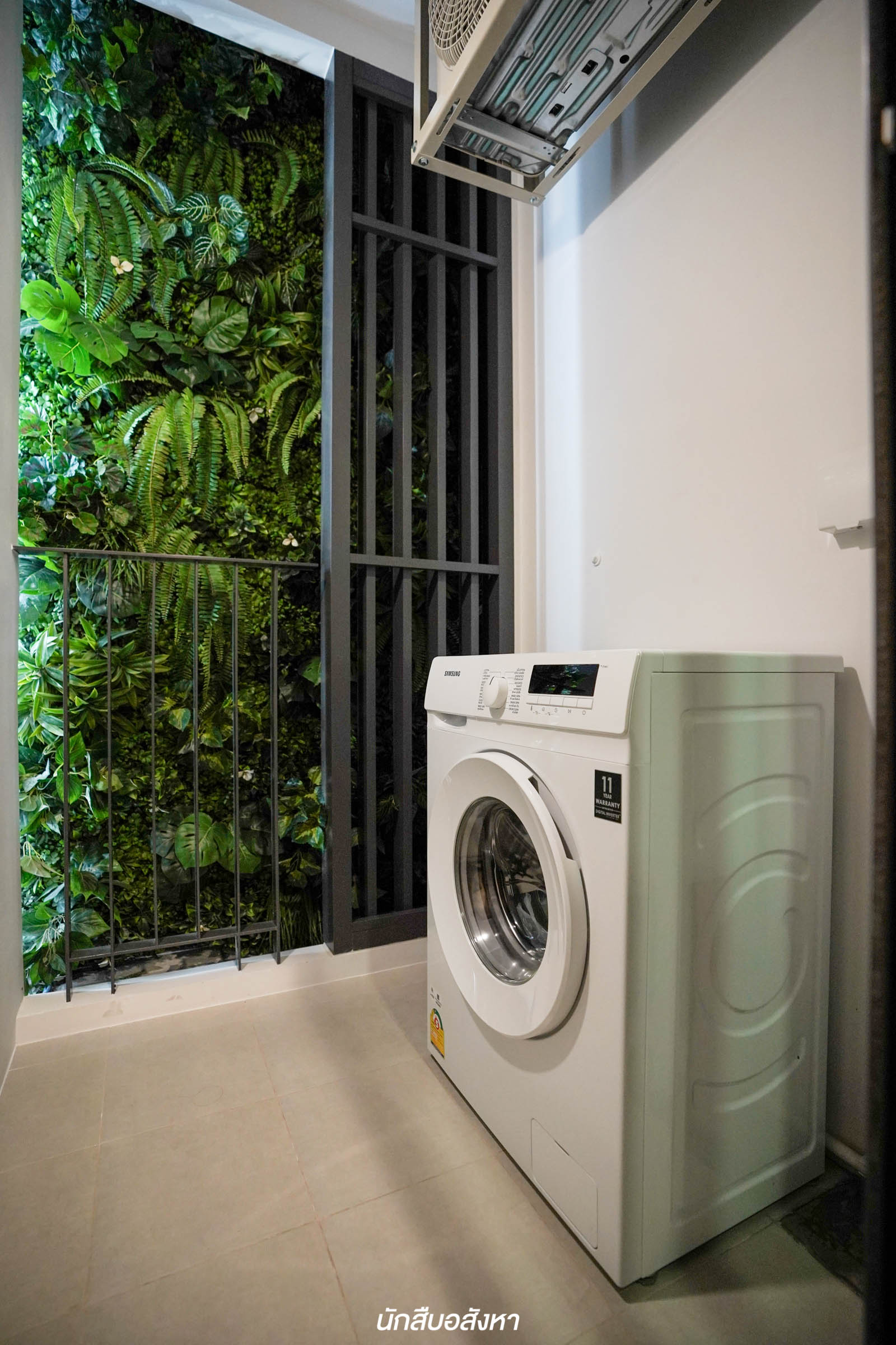 ระเบียง ทางโครงการแขวน Condensing Units ด้านบน ทำให้มีใช้งานได้อย่างเต็มพื้นที่ สามารถวางเครื่องซักผ้า และยังเหลือพื้นที่สำหรับตากผ้าได้ครับ