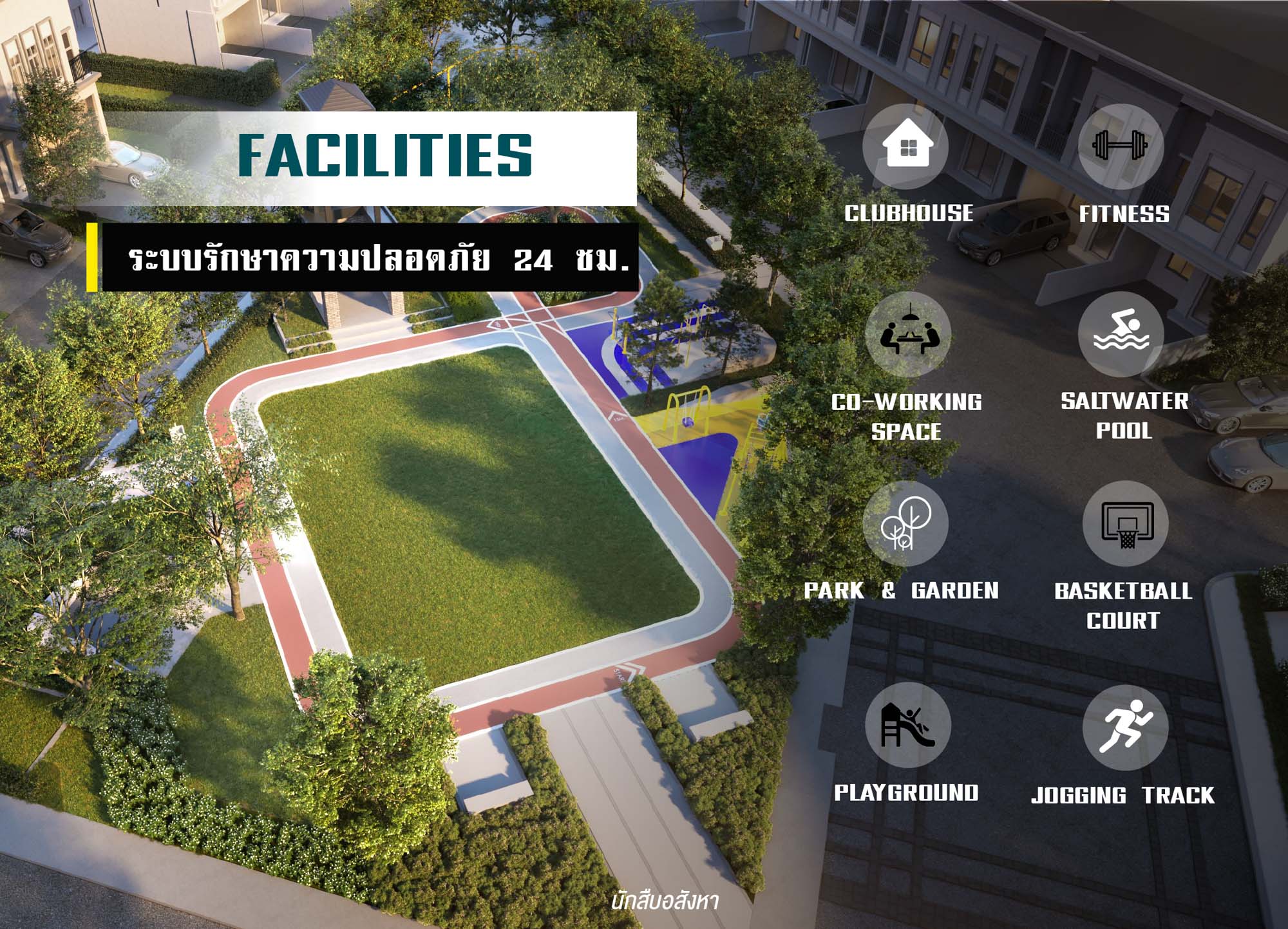 - ส่วนกลางและสเปกบ้าน : พื้นที่ส่วนกลางไม่น้อยถ้าเทียบกับจำนวนบ้านทั้งโครงการ มีทุก Activity ที่ตอบโจทย์ทุกช่วงอายุของคนในครอบครัว ส่วนสเปกของบ้านให้มา รองรับรูปแบบการใช้ชีวิตจริงๆ มาพร้อมเทคโนโลยี Home Automation ที่มีแบรนด์การันตี