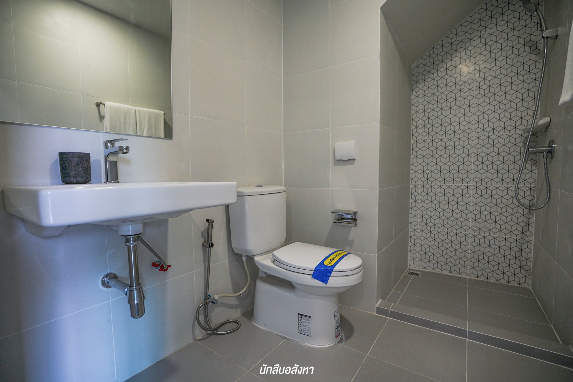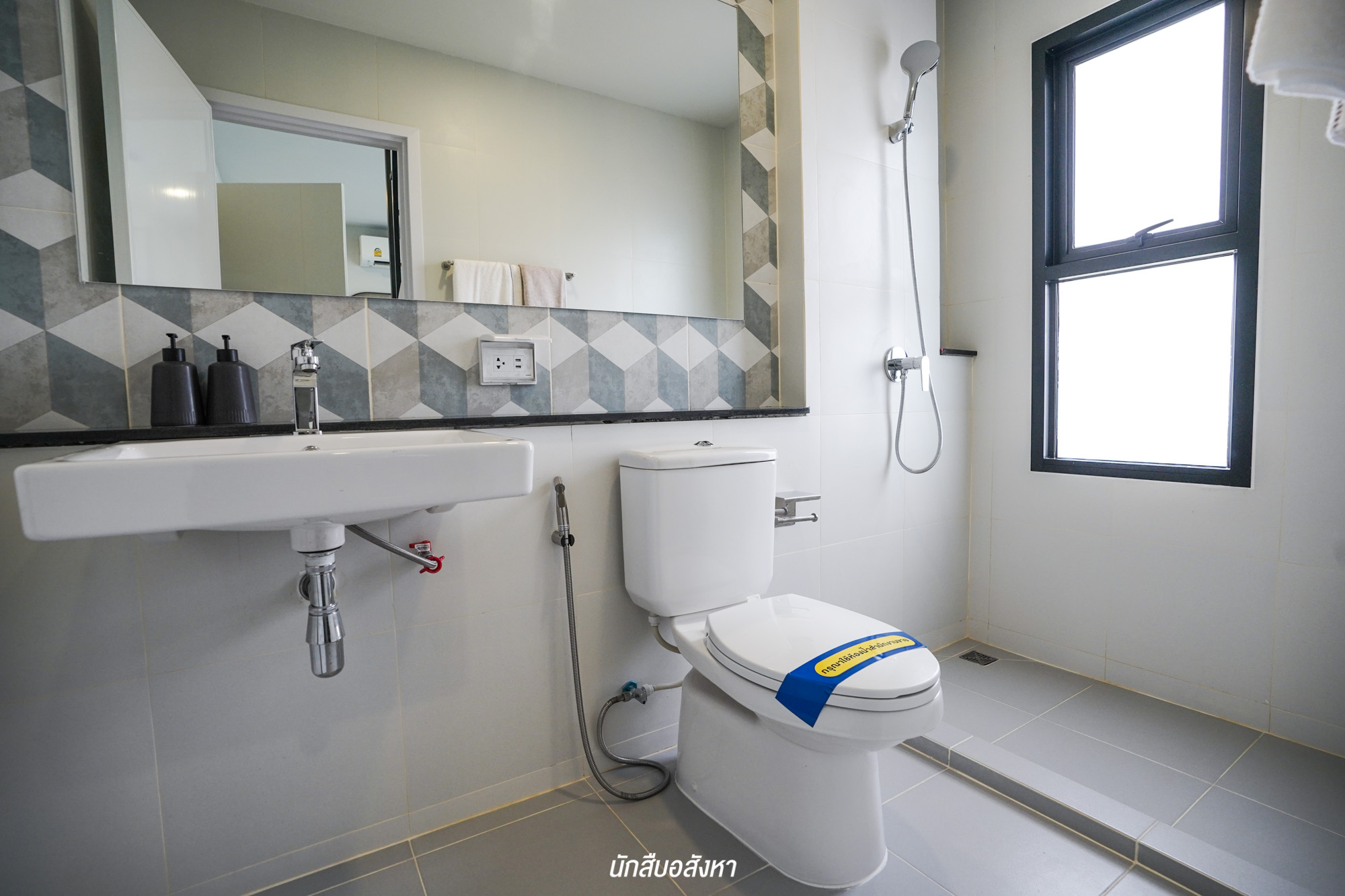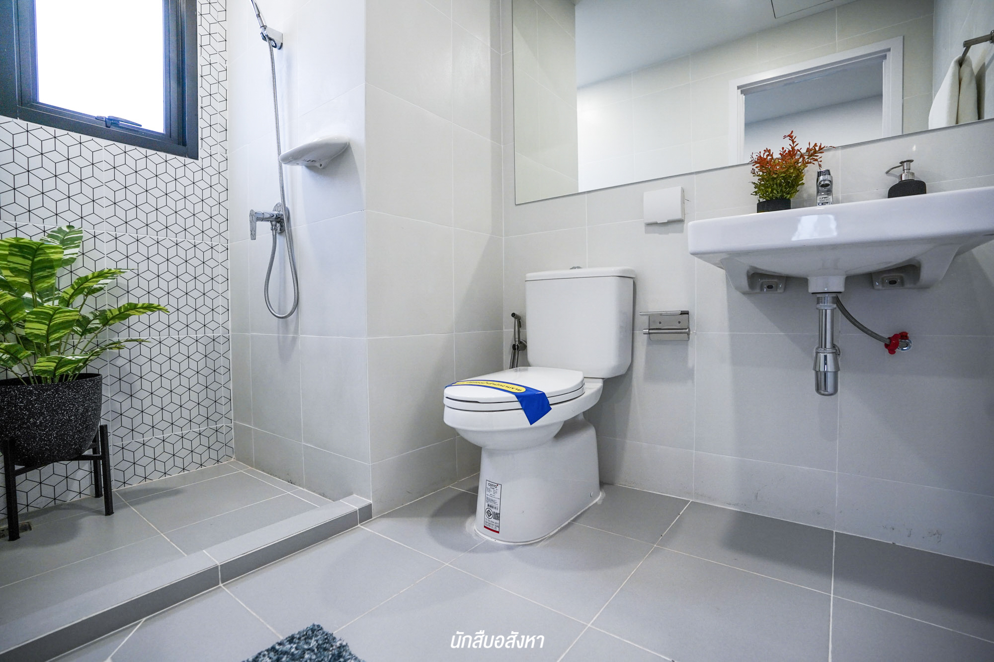 ห้องน้ำภายในห้องนอนมีฟังก์ชันที่เหมือนกับห้องแรก แยกส่วนเปียกและแห้ง เพื่อความสะดวกต่อการใช้งาน ที่พื้นมีสเตปยกขึ้นเพื่อไม่ให้น้ำไหลออกมาทั่วห้อง ยังสามารถที่จะติดฉากกั้นเพิ่มความเป็นสัดส่วนได้อีกครับ