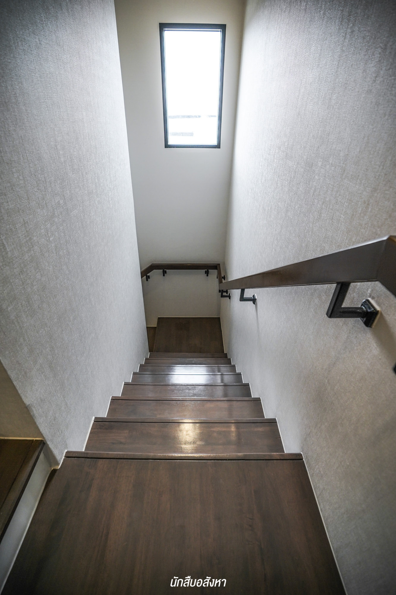 มาเริ่มตั้งแต่ตัวบันไดเป็นโครงสร้างคอนกรีตเสริมเหล็ก ลูกนอนเป็นไม้อัดยางพารา พร้อมเซาะร่องจมูกบันได กันลื่นหกล้ม และระหว่างทางเดินบันไดยังมีช่องแสง ช่วยเพิ่มความสว่างในช่วงกลางวัน ทั้งประหยัดไฟฟ้าและป้องกันอุบัติเหตุได้ด้วย