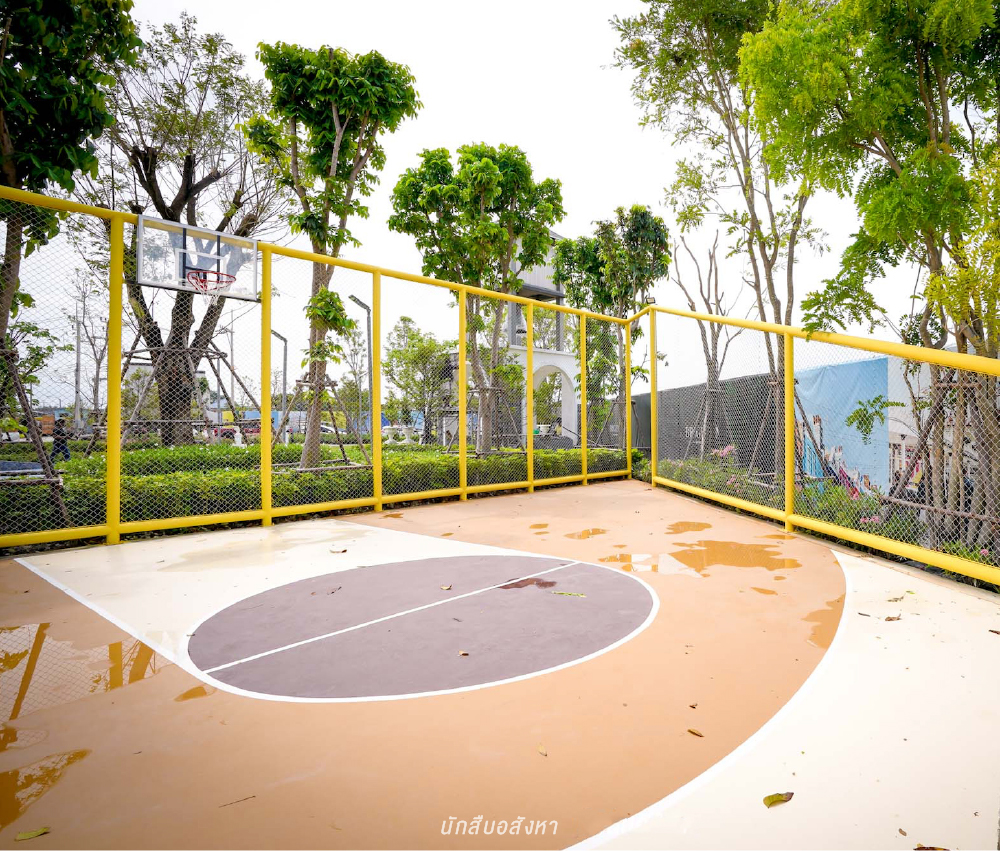 สนามบาสเกตบอล : ปลายสวนจะมีสนามบาส ซึ่งปูพื้นกระแทกและล้อมรั้วเอาไว้ เพื่อความสะดวกและปลอดภัยกับลูกบ้าน