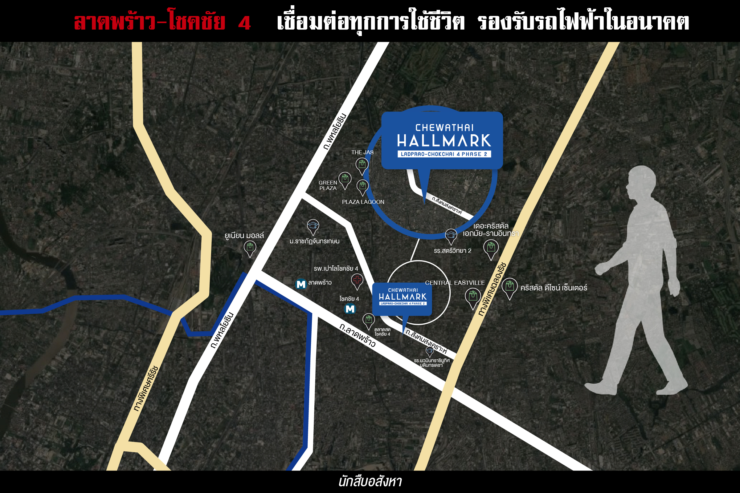 โครงการ Chewathai Hallmark ลาดพร้าว – โชคชัย 4 เฟส 2 ตั้งอยู่บนถนนสังคมสงเคราะห์ ซึ่งสามารถเชื่อมต่อกับถนนโชคชัย 4 และถนนลาดพร้าว 71 อีกทั้งสองฝั่งเป็นถนนที่ค่อนข้างคึกคัก พร้อมแวดล้อมไปด้วยสิ่งอำนวยความสะดวก ครบทุกการใช้ชีวิต ไม่ว่าจะเป็น…