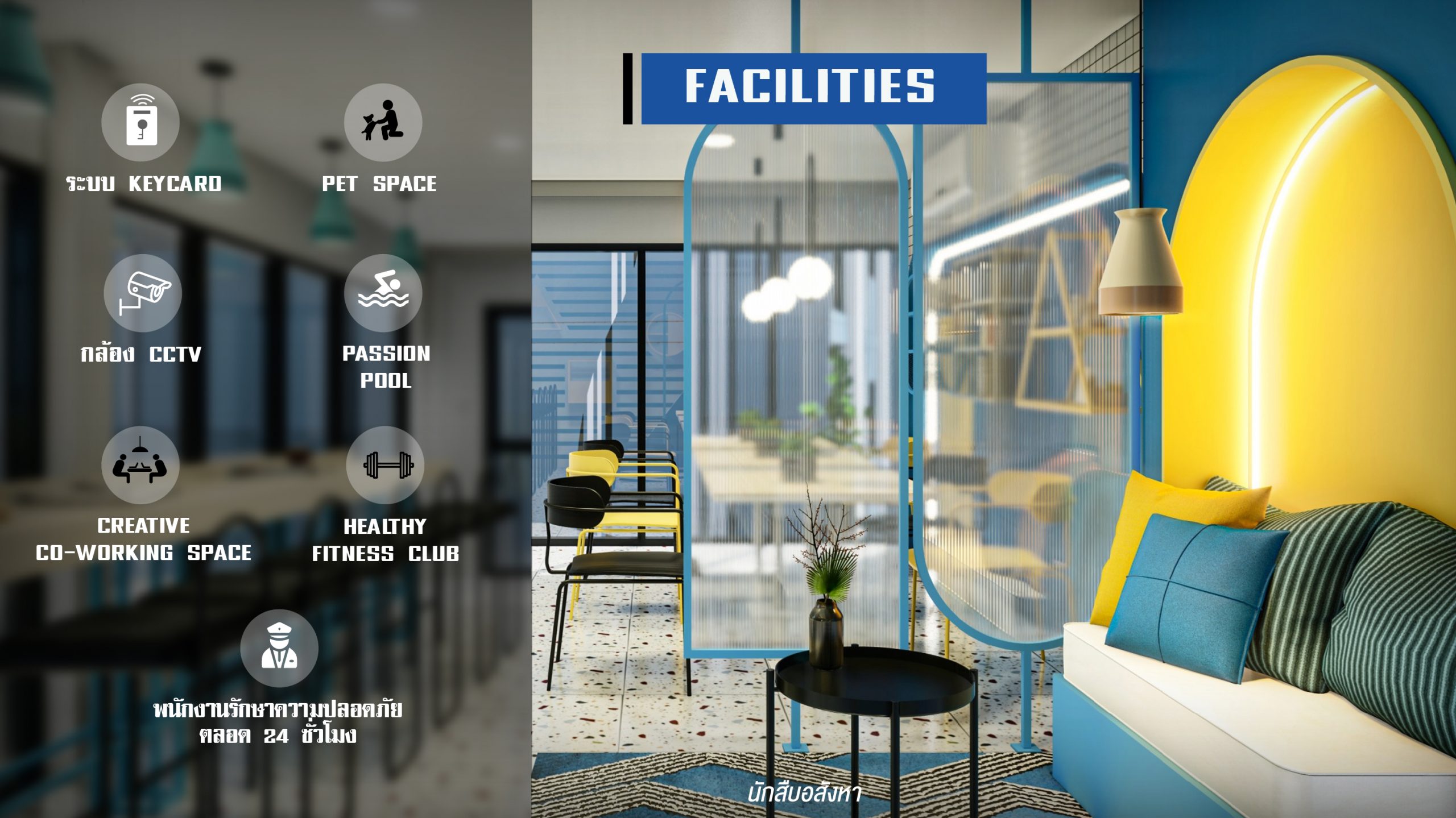 ส่วนกลาง : ส่วนกลางมีกิจกรรมรองรับมากมายเลยครับ ทั้ง พักผ่อน ออกกำลังกาย และระบบรักษาความปลอดภัย 24 ชั่วโมง พร้อมโซนสำหรับสัตว์เลี้ยงโดยเฉพาะ
