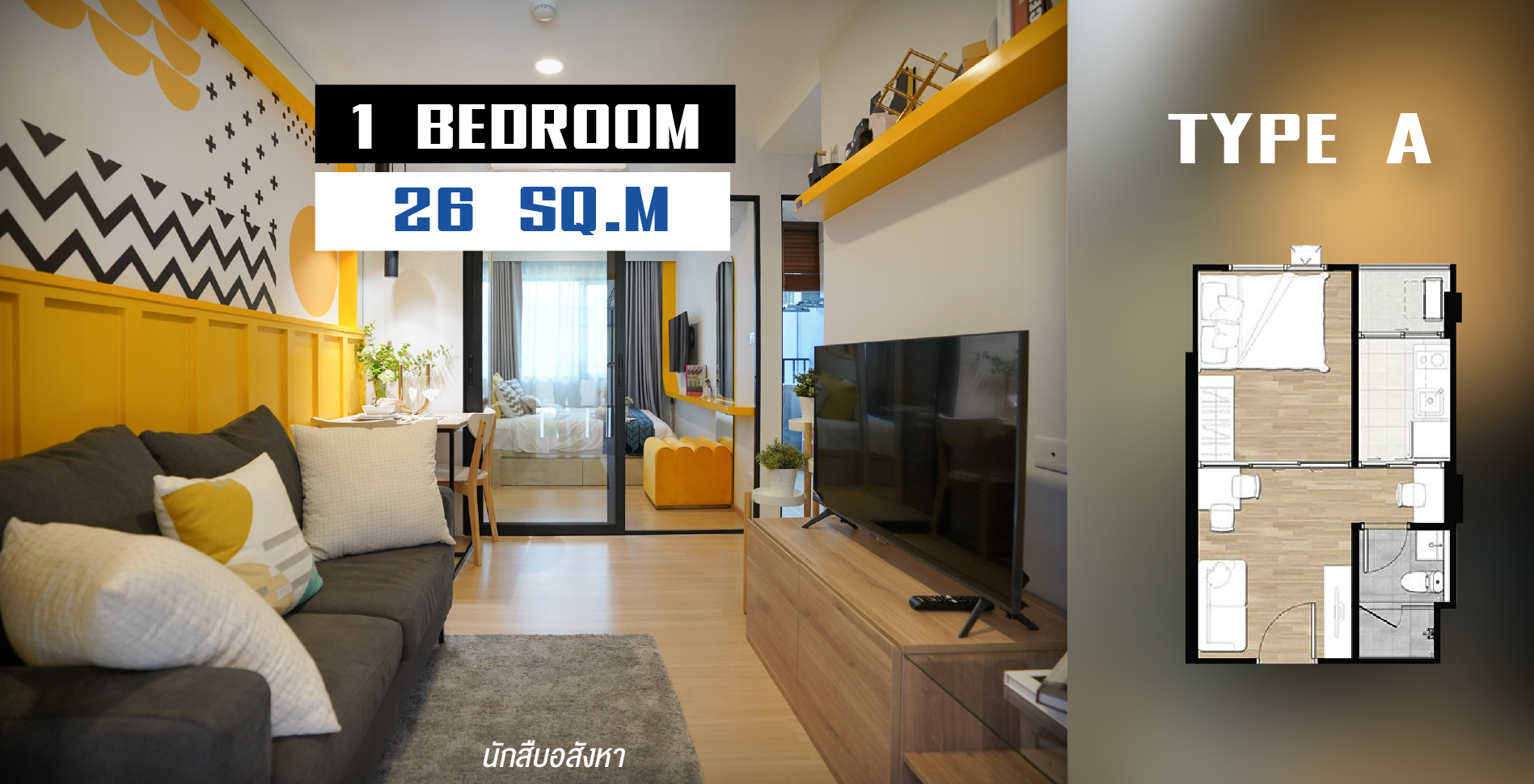 Type A : 1 Bedroom พื้นที่ใช้สอย 26.00 – 26.50 ตร.ม.