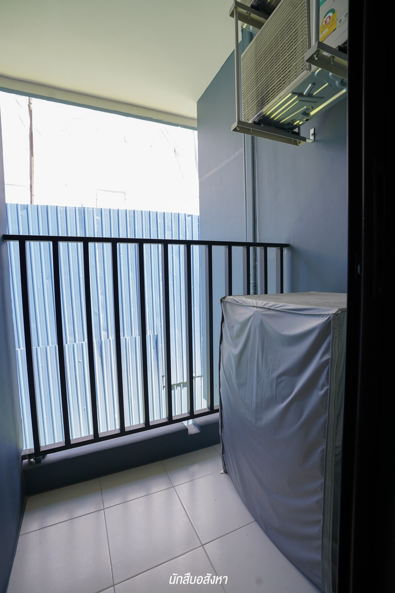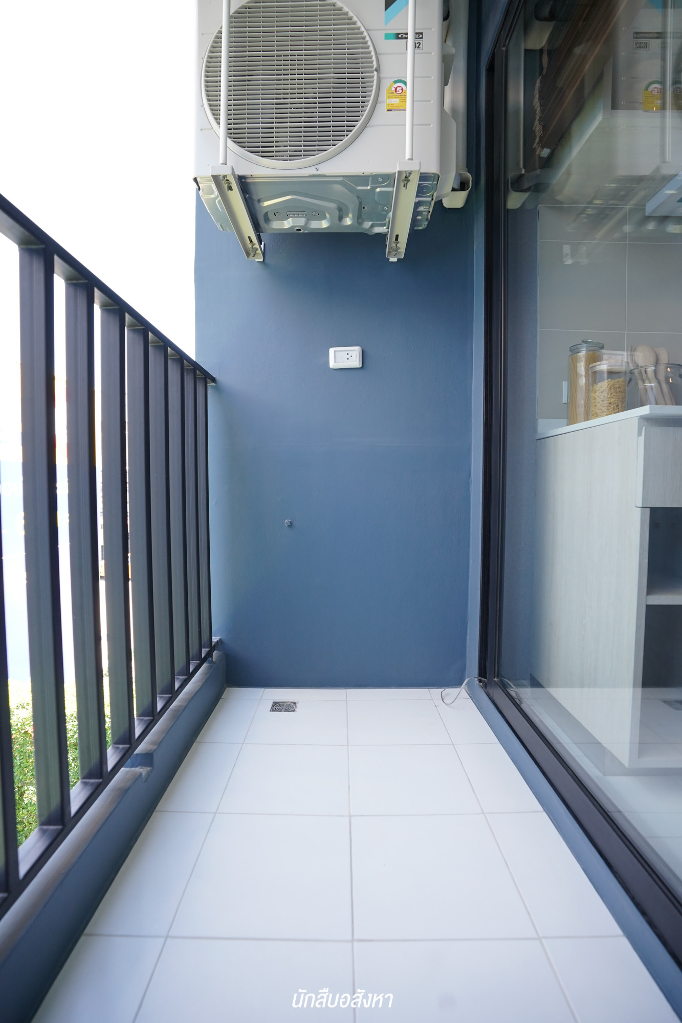 ระเบียงห้อง ทางโครงการแขวน Condensing Units ด้านข้าง มีพื้นที่ใช้งานได้อย่างเต็มพืนที่ ทำให้เหลือพื้นที่สามารถวางเครื่องซักผ้า ตากผ้า หรือมุมปลูกต้นไม้เล็กๆ ครับ