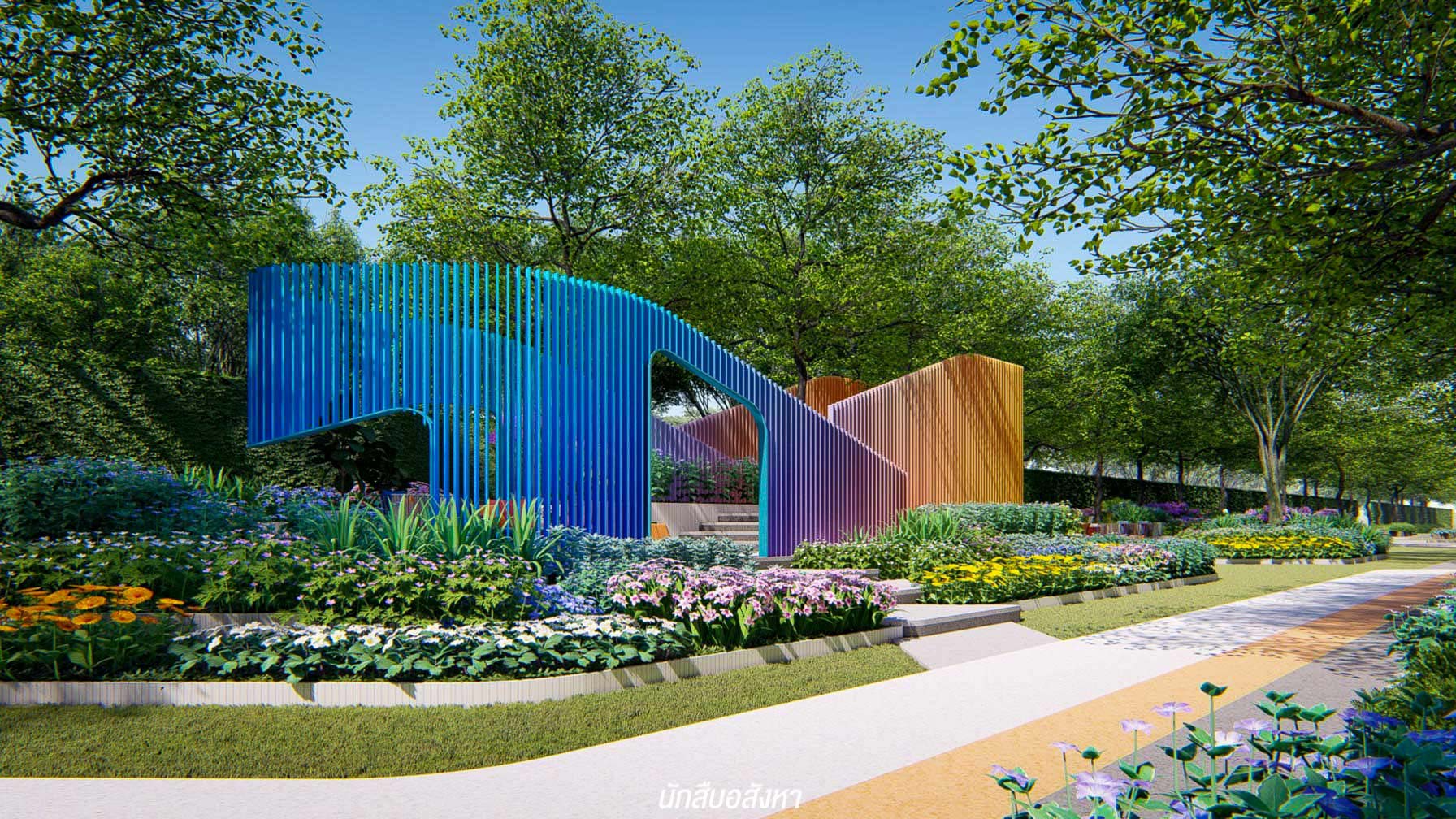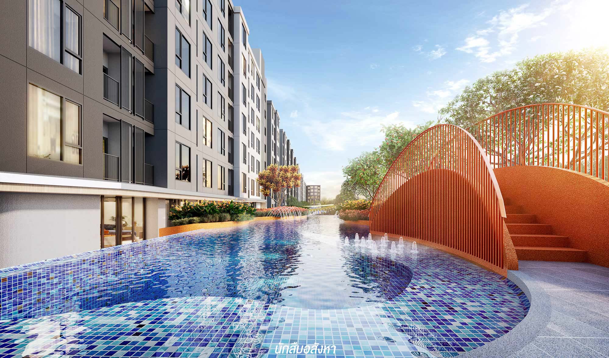 กลับมาที่ตัวโครงการ ต้องบอกว่ามีความโดดเด่นชัดเจน เริ่มจาก Concept ที่โครงการหยิบยกชูประเด็นจาก ‘ฤดูกาล’ ไม่เพียงการสื่อด้วยสัญลักษณ์ แต่พัฒนาแนวคิดตั้งแต่การวางแปลนดูทิศทางของธรรมชาติก่อน เพื่อให้ลูกบ้านรับลมและแสงจากธรรมชาติได้มากที่สุด และทำให้แต่ละตึกไม่บล็อกวิวของกันและกัน