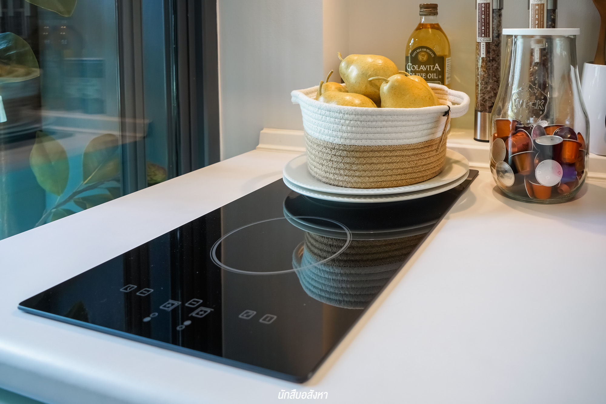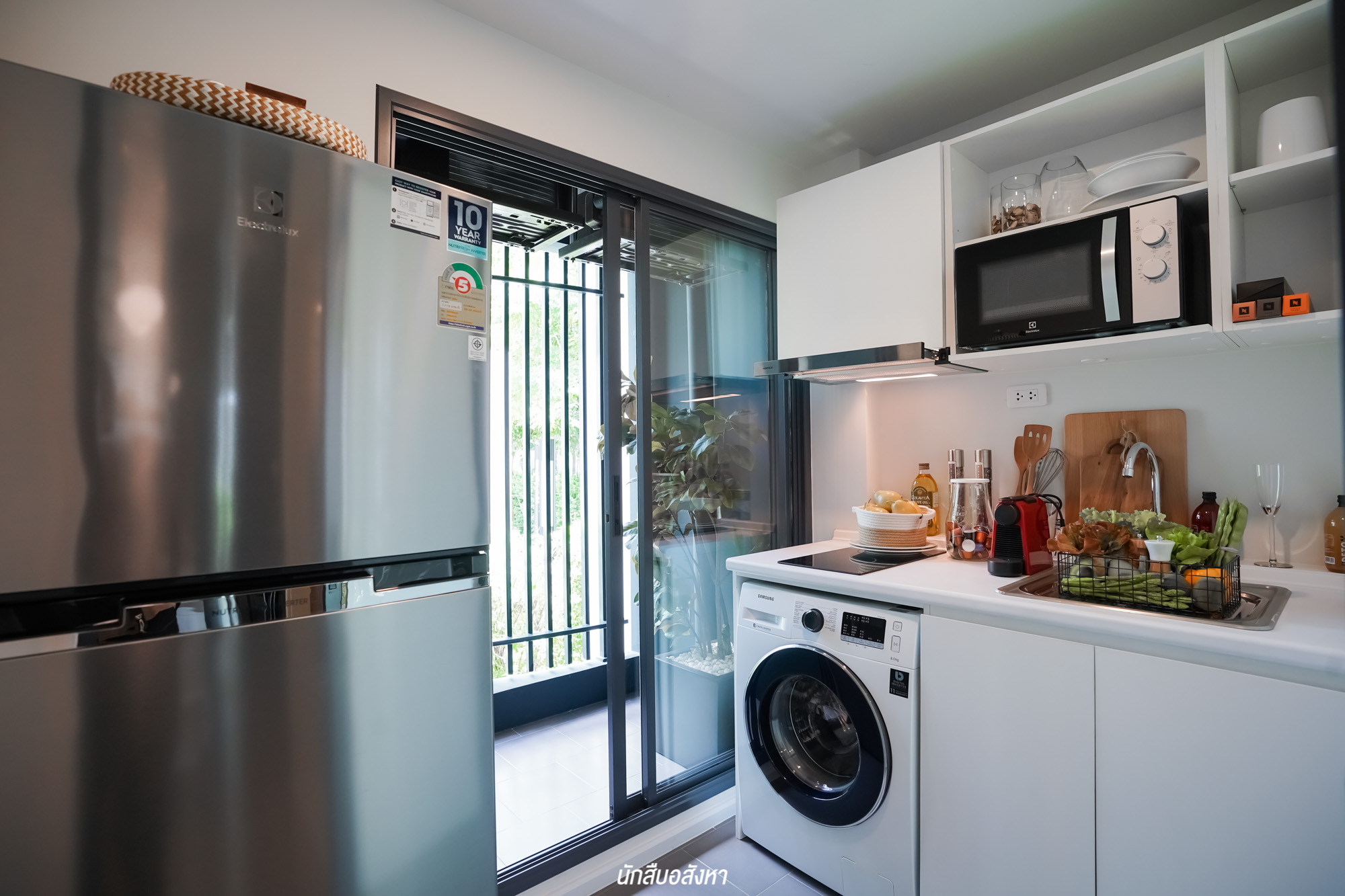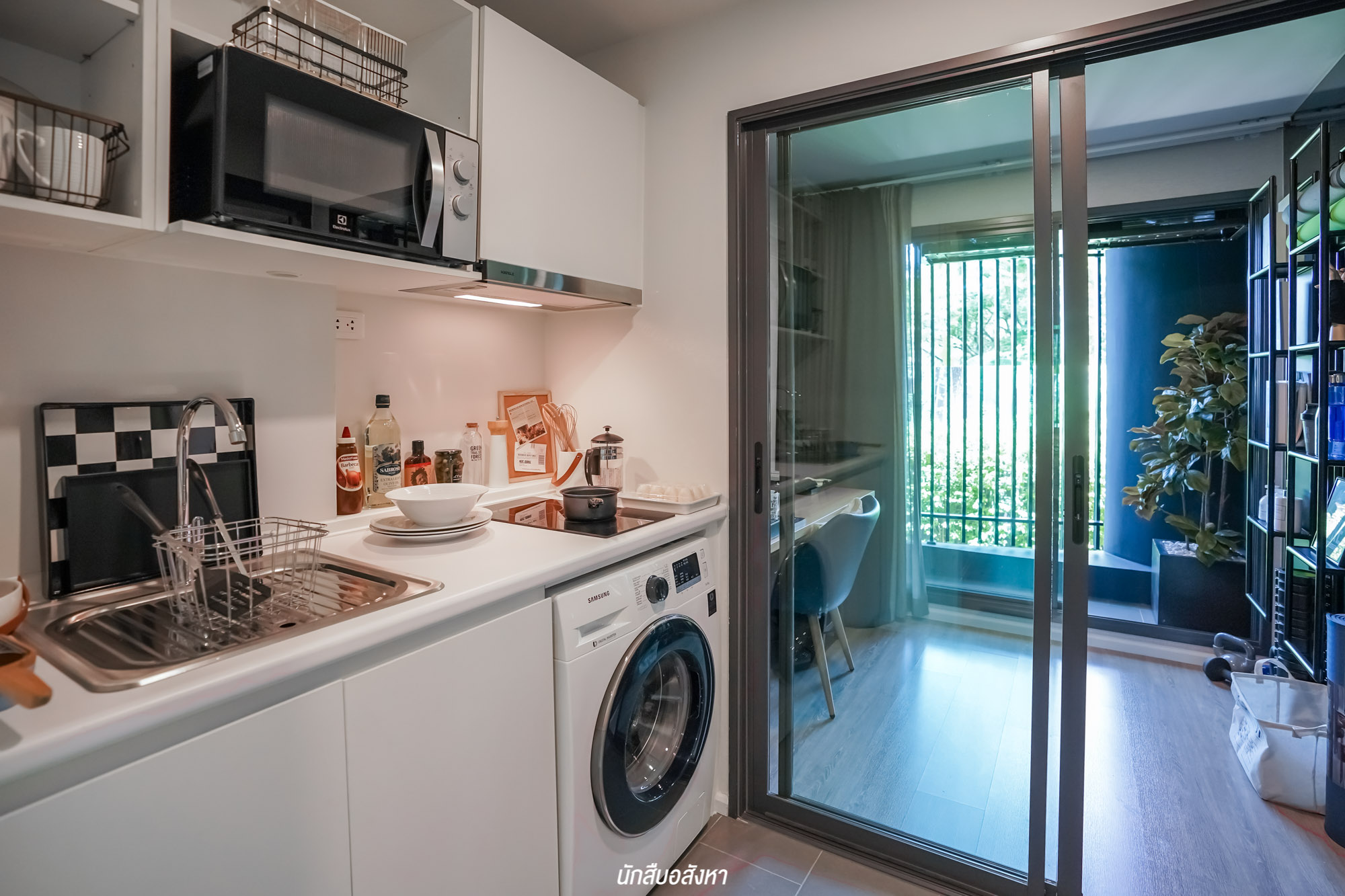 สำหรับห้องครัวมีประตูบานเลื่อนกั้น ซึ่งช่วยเรื่องกลิ่น ควัน เข้าไปติดเฟอร์นิเจอร์ส่วนอื่นๆ ได้ในระดับนึงครับ