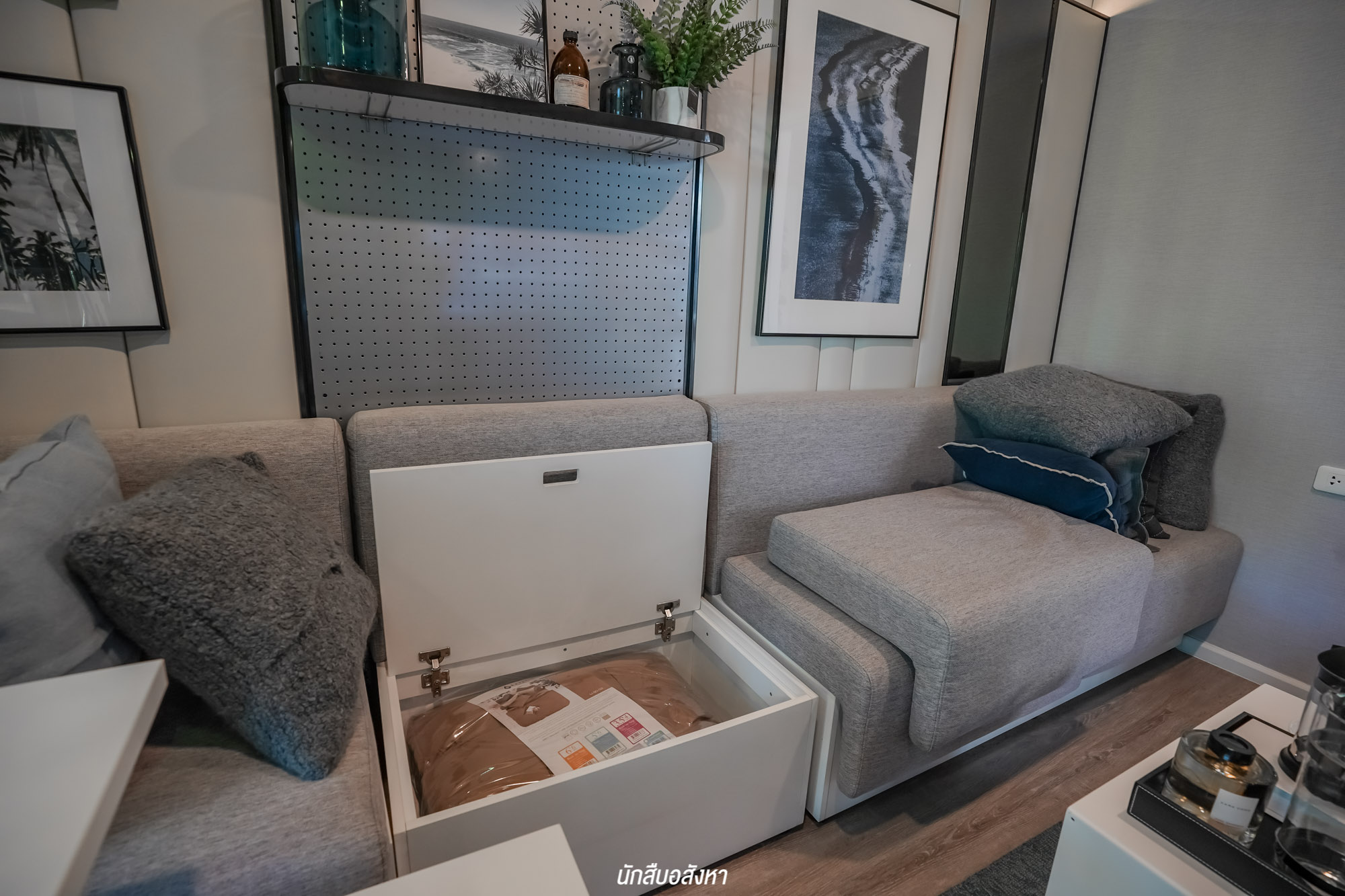 โซฟาที่ทางโครงการให้มา สามารถเก็บของได้อีกด้วยครับ เรียกว่าสามารถใช้ฟังก์ชันได้อย่างหลากหลาย ใช้พื้นที่ได้อย่างคุ้มค่าครับ