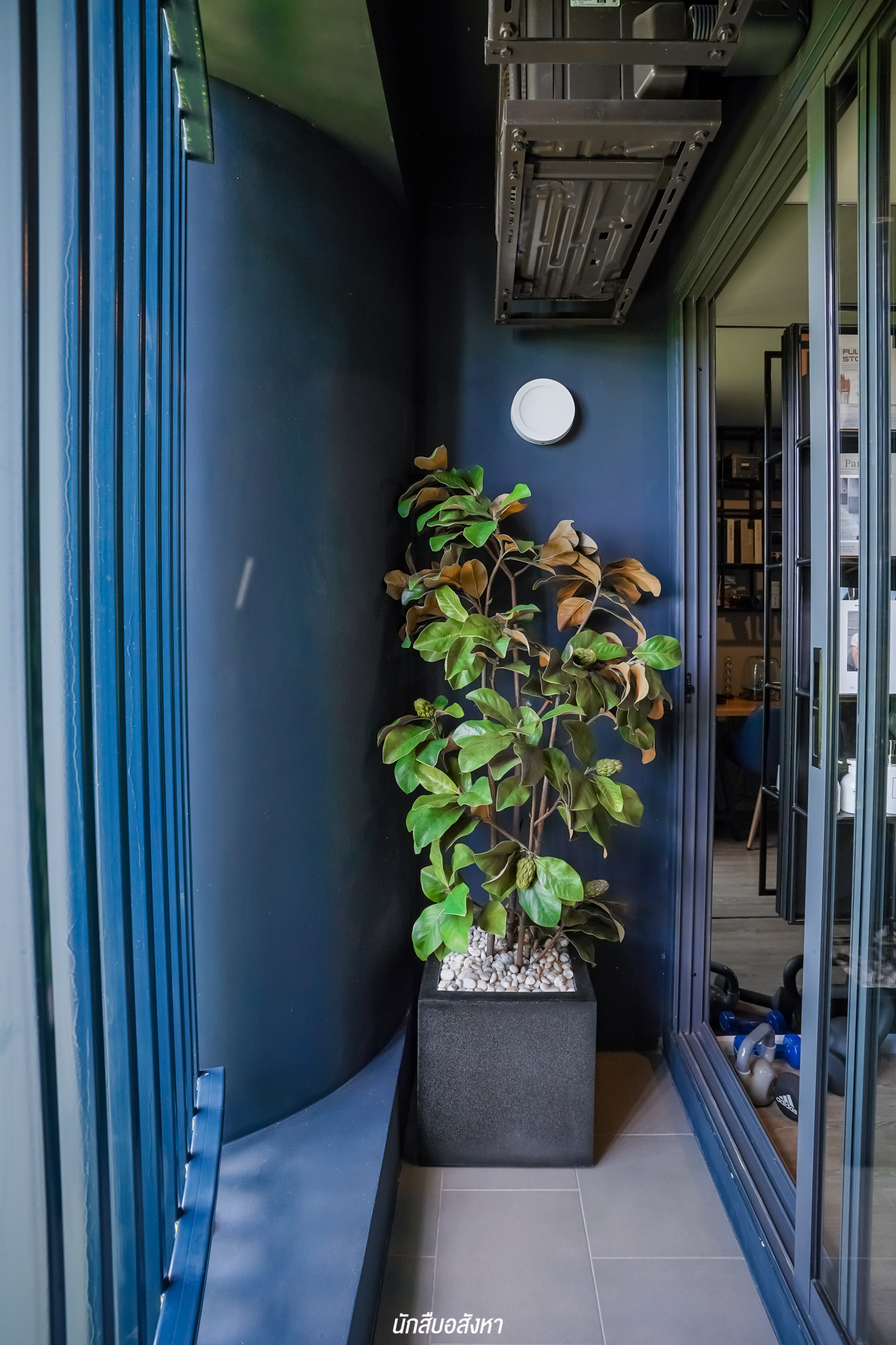 ห้องอเนกประสงค์เชื่อมต่อกับระเบียง โดยโครงการแขวน Condensing Units ไว้ด้านบน สามารถใช้พื้นที่ได้อย่างเต็มที่